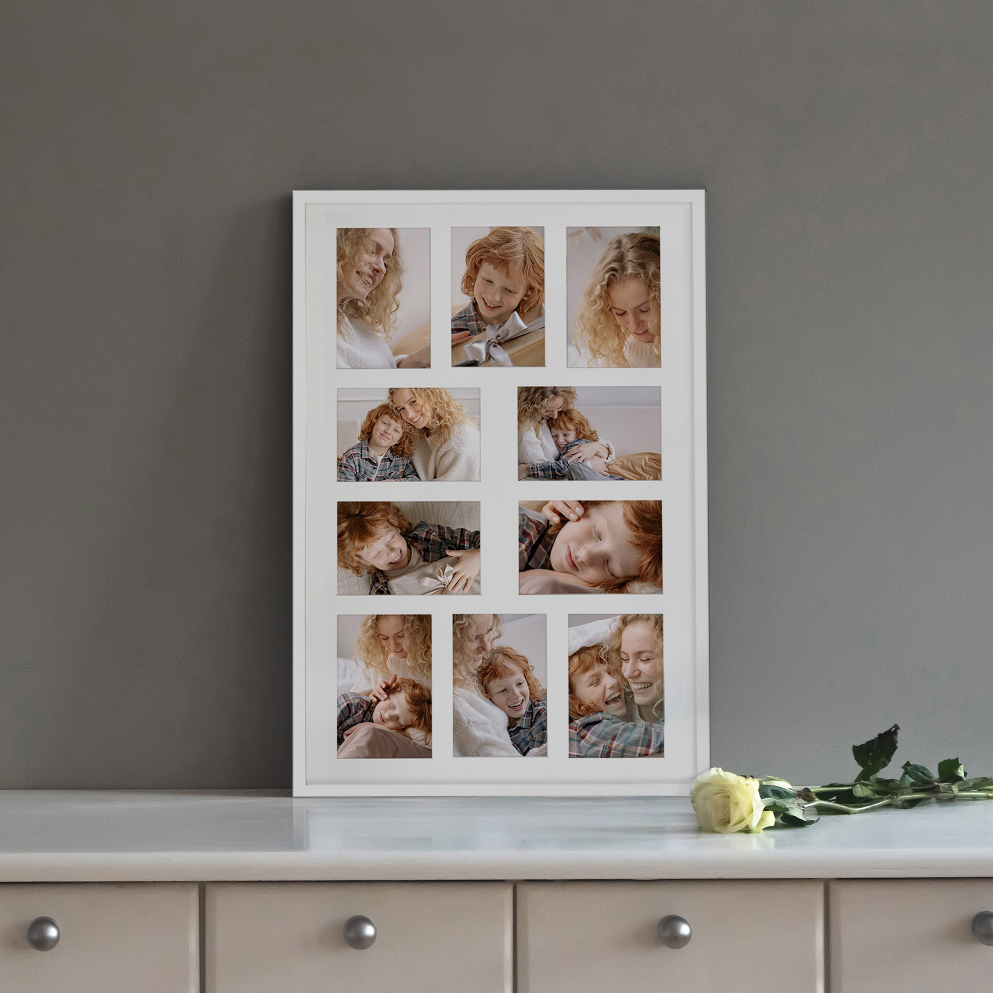 - Foto galeria drewniana ramka z passe partout na kilka zdjęć. Do oprawy zdjęć 10 x 10x15cm. Model: White 40x60