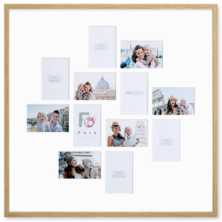 - Foto galeria drewniana ramka z passe partout na kilka zdjęć. Do oprawy zdjęć 12 x 10x15cm. Model: Natural 70x70
