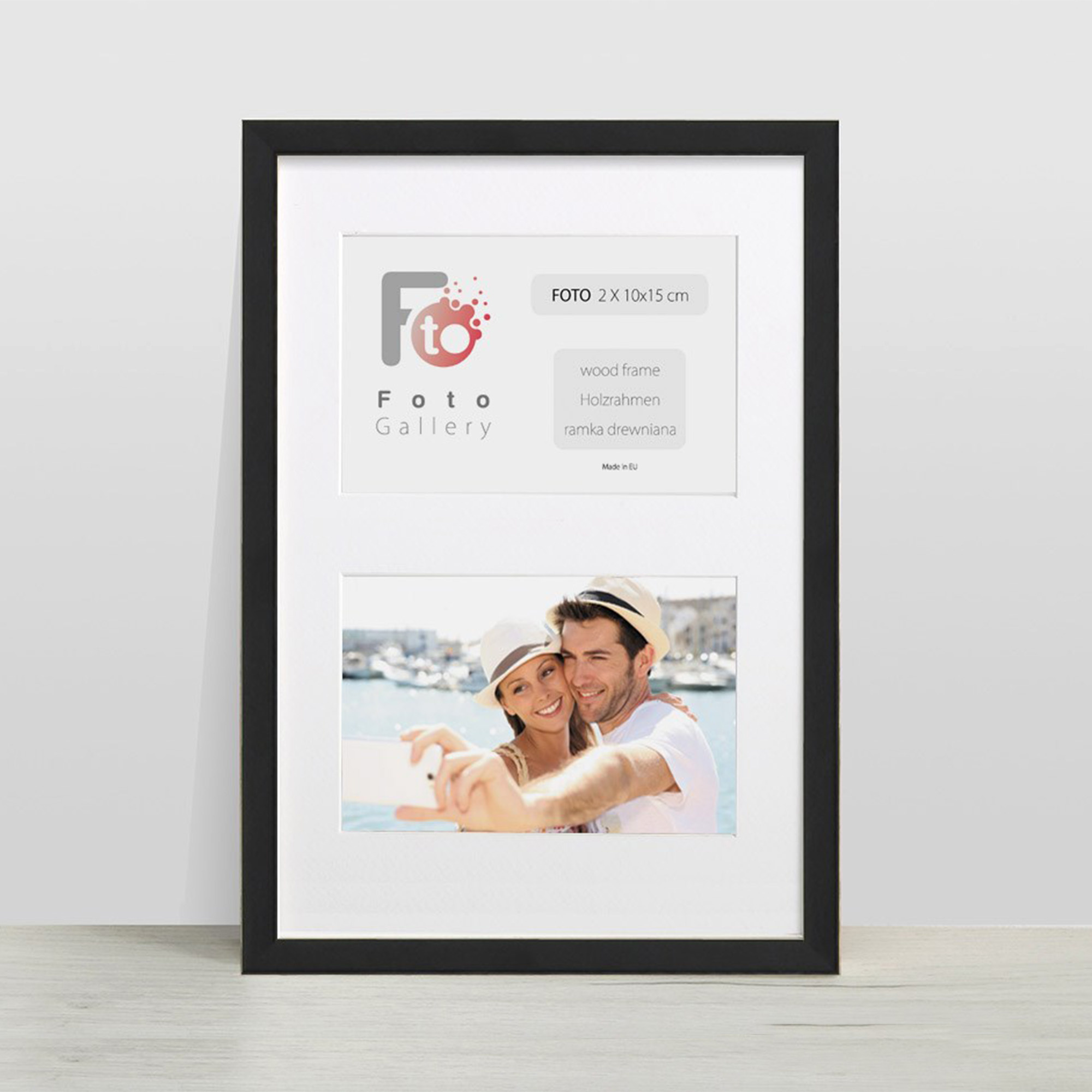 - Foto galeria drewniana ramka z passe partout na kilka zdjęć. Do oprawy zdjęć 2 x 10x15cm. Model: Black 20x27