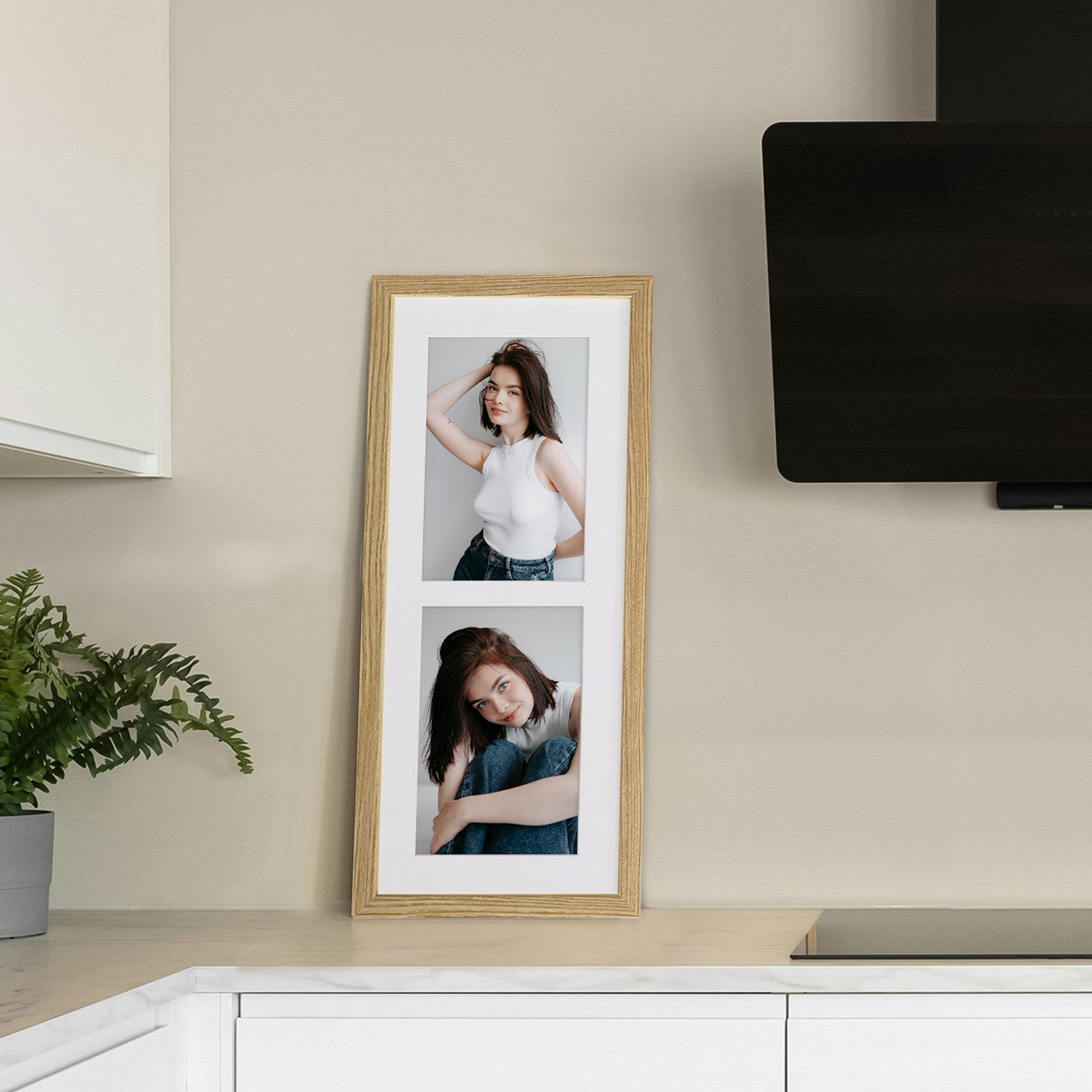 - Foto galeria drewniana ramka z passe partout na kilka zdjęć. Do oprawy zdjęć 2 x 10x15cm. Model: Natural 15x36