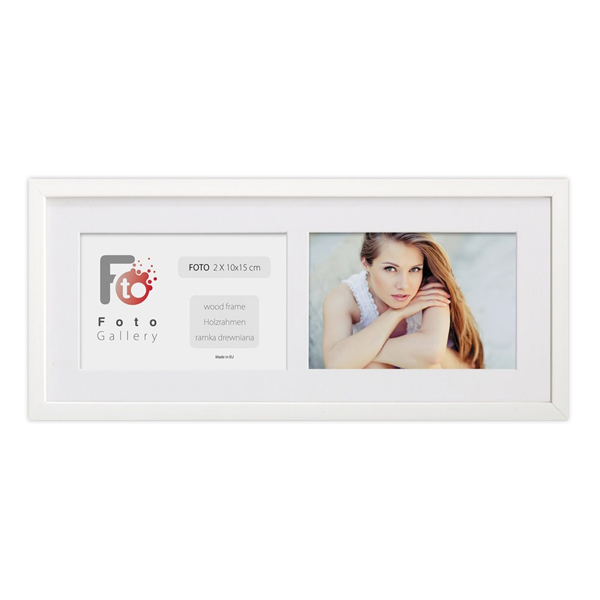 - Foto galeria drewniana ramka z passe partout na kilka zdjęć. Do oprawy zdjęć 2 x 10x15cm. Model: White 15x36