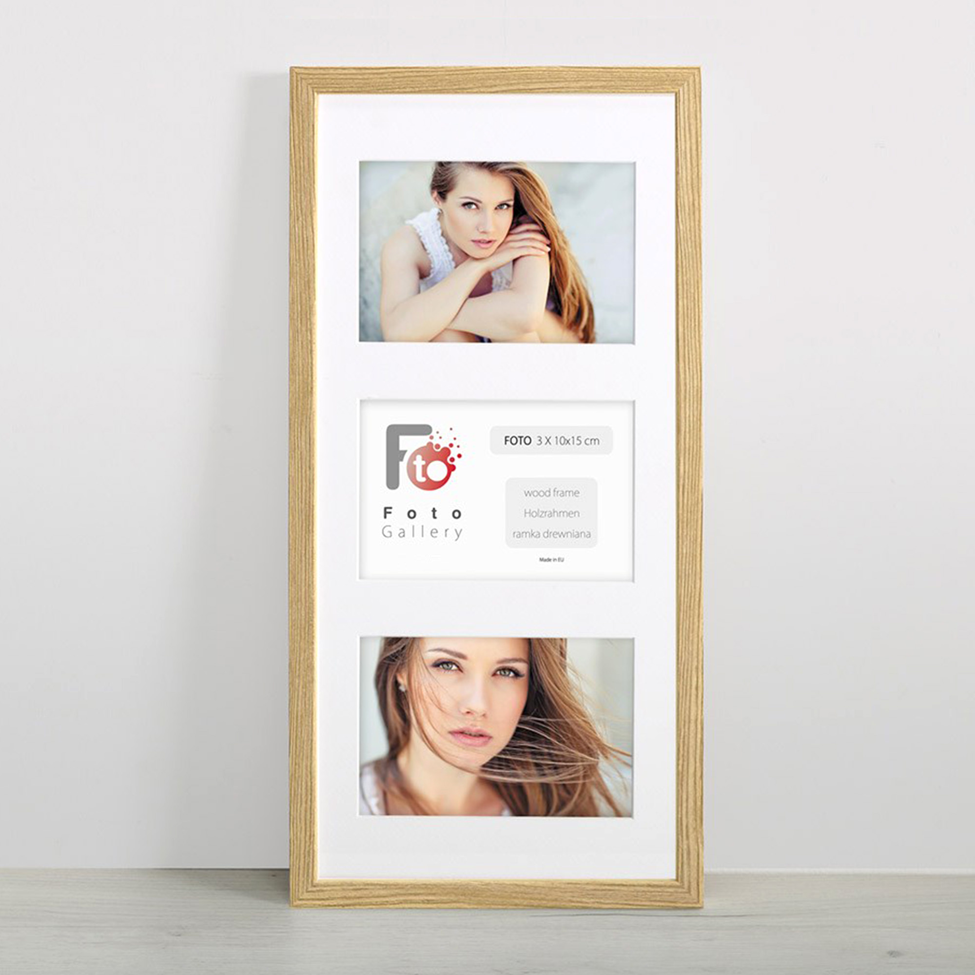 - Foto galeria drewniana ramka z passe partout na kilka zdjęć. Do oprawy zdjęć 3 x 10x15cm. Model: Natural 20x42