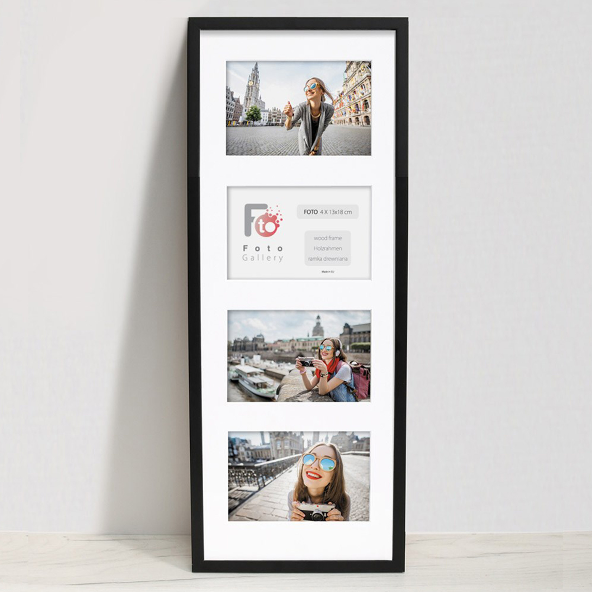 - Foto galeria drewniana ramka z passe partout na kilka zdjęć. Do oprawy zdjęć 4 x 13x18cm. Model: Black 23x66