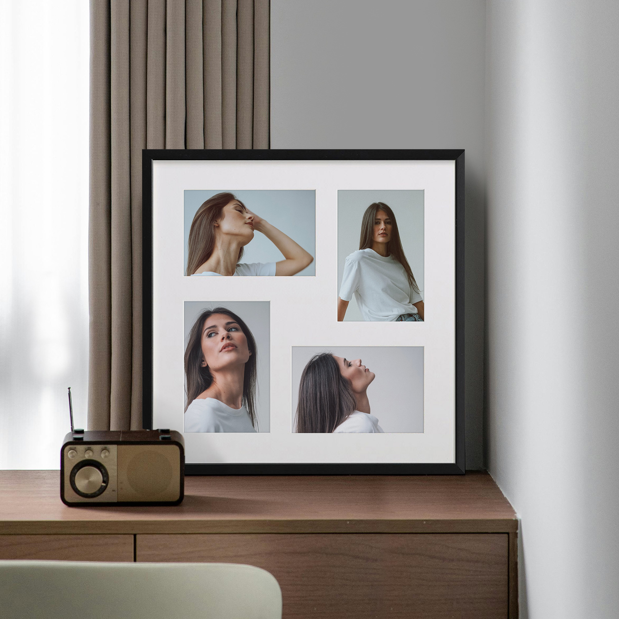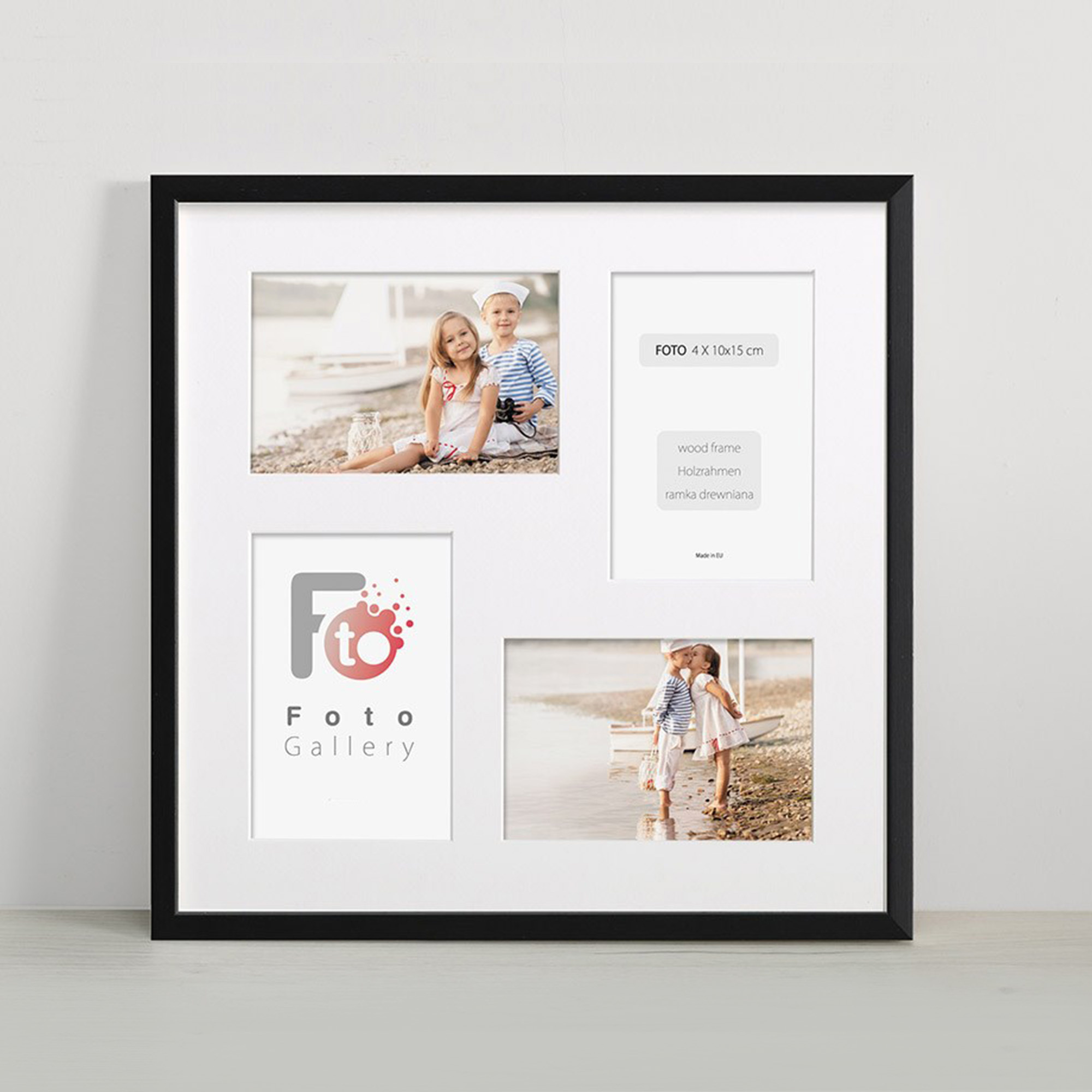 - Foto galeria drewniana ramka z passe partout na kilka zdjęć. Do oprawy zdjęć 4 x 10x15cm. Model: Black 34x34