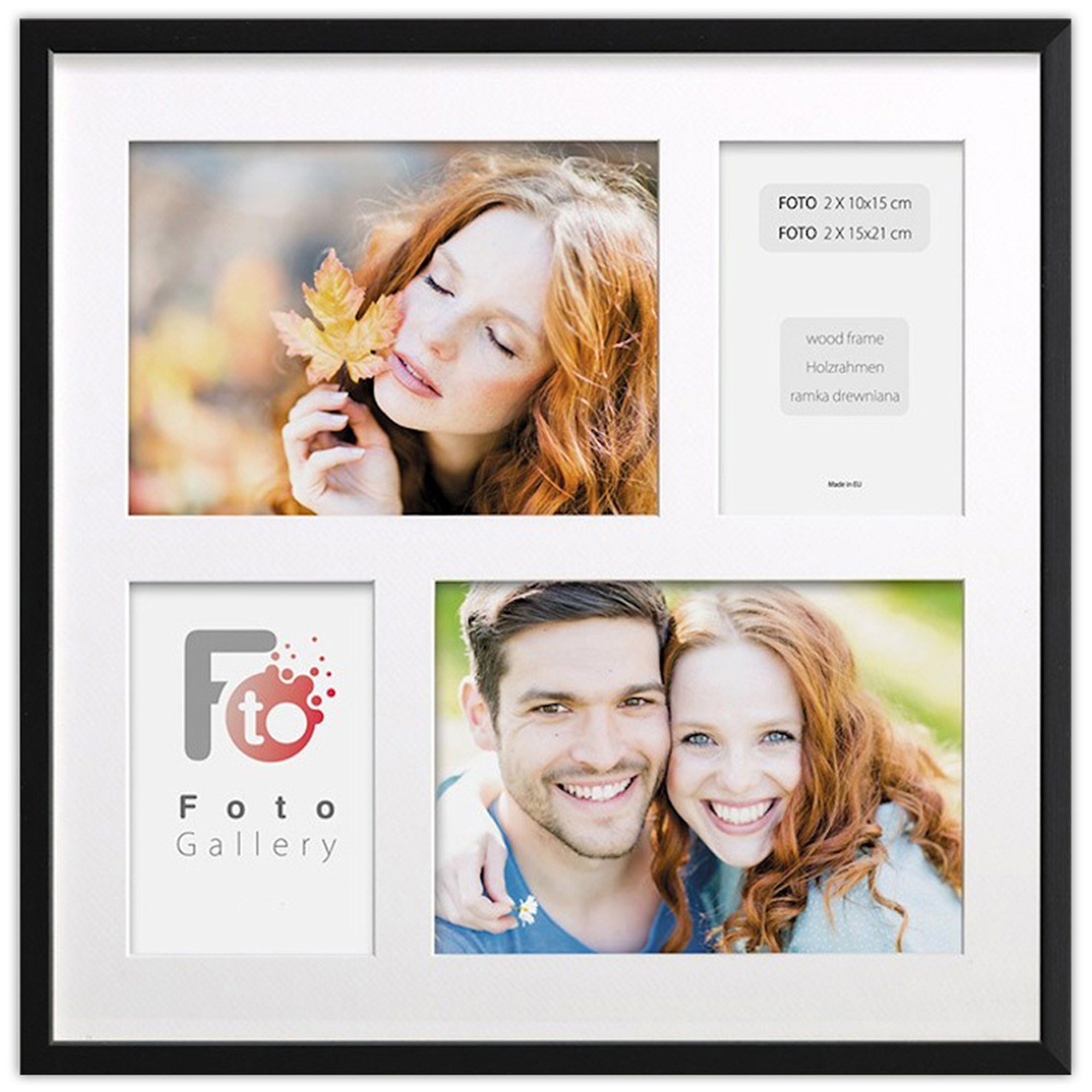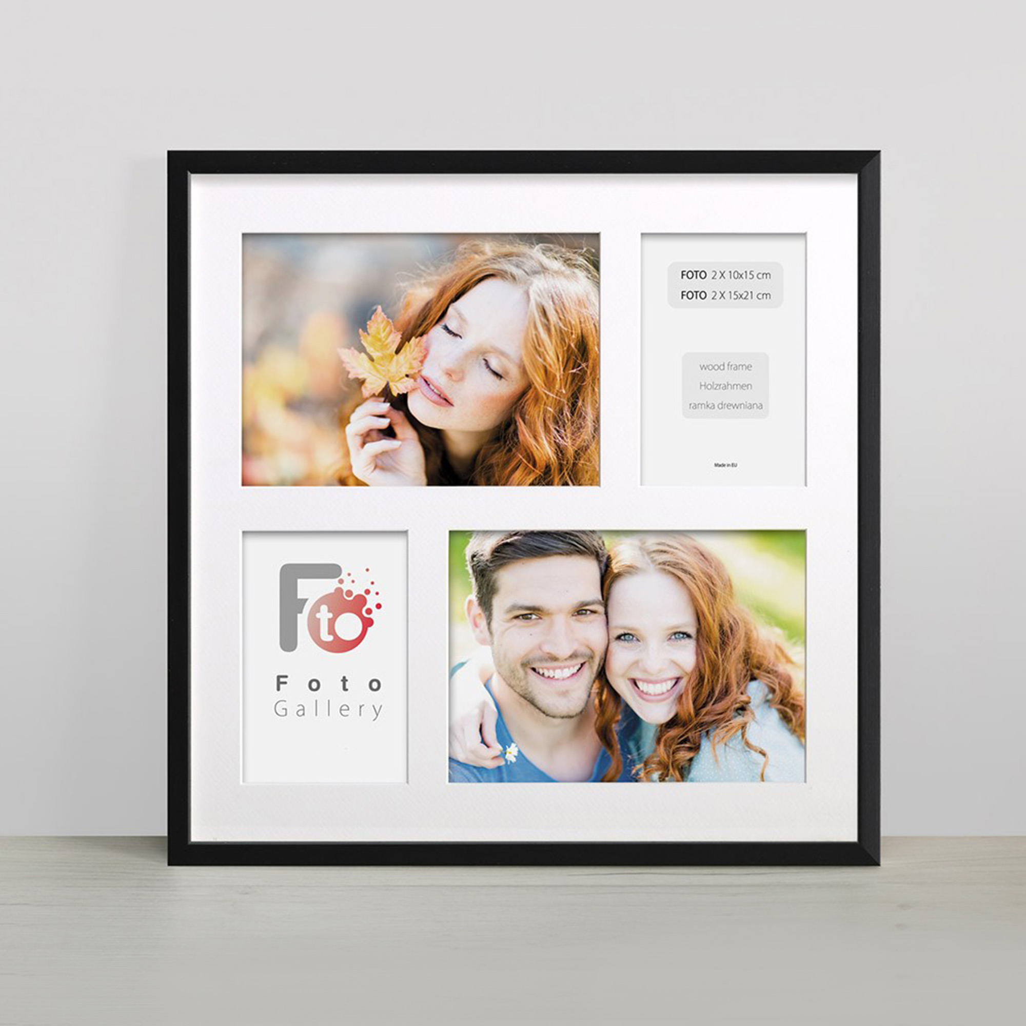 - Foto galeria drewniana ramka z passe partout na kilka zdjęć. Do oprawy zdjęć 2 x 15x21cm, 2 x 10x15cm. Model: Black 39x39