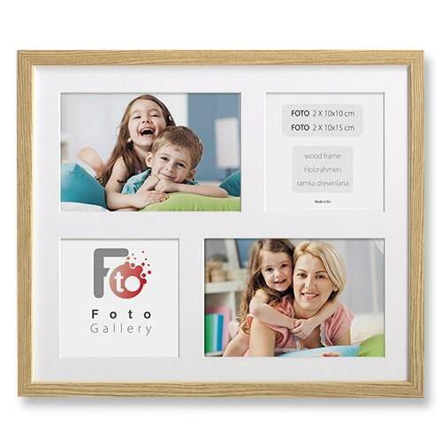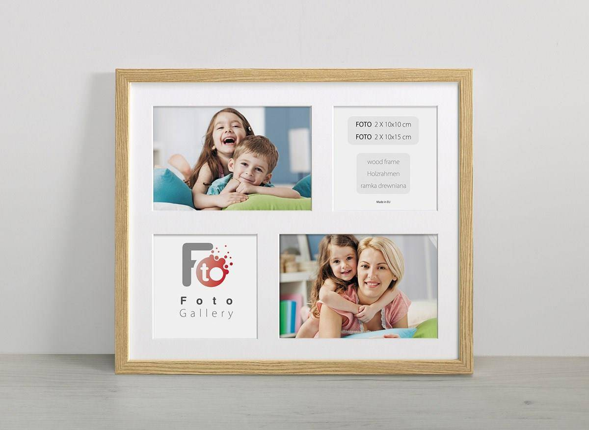 - Foto galeria drewniana ramka z passe partout na kilka zdjęć. Do oprawy zdjęć 2 x 10x10cm, 2 x 10x15cm. Model: Natural 26x31