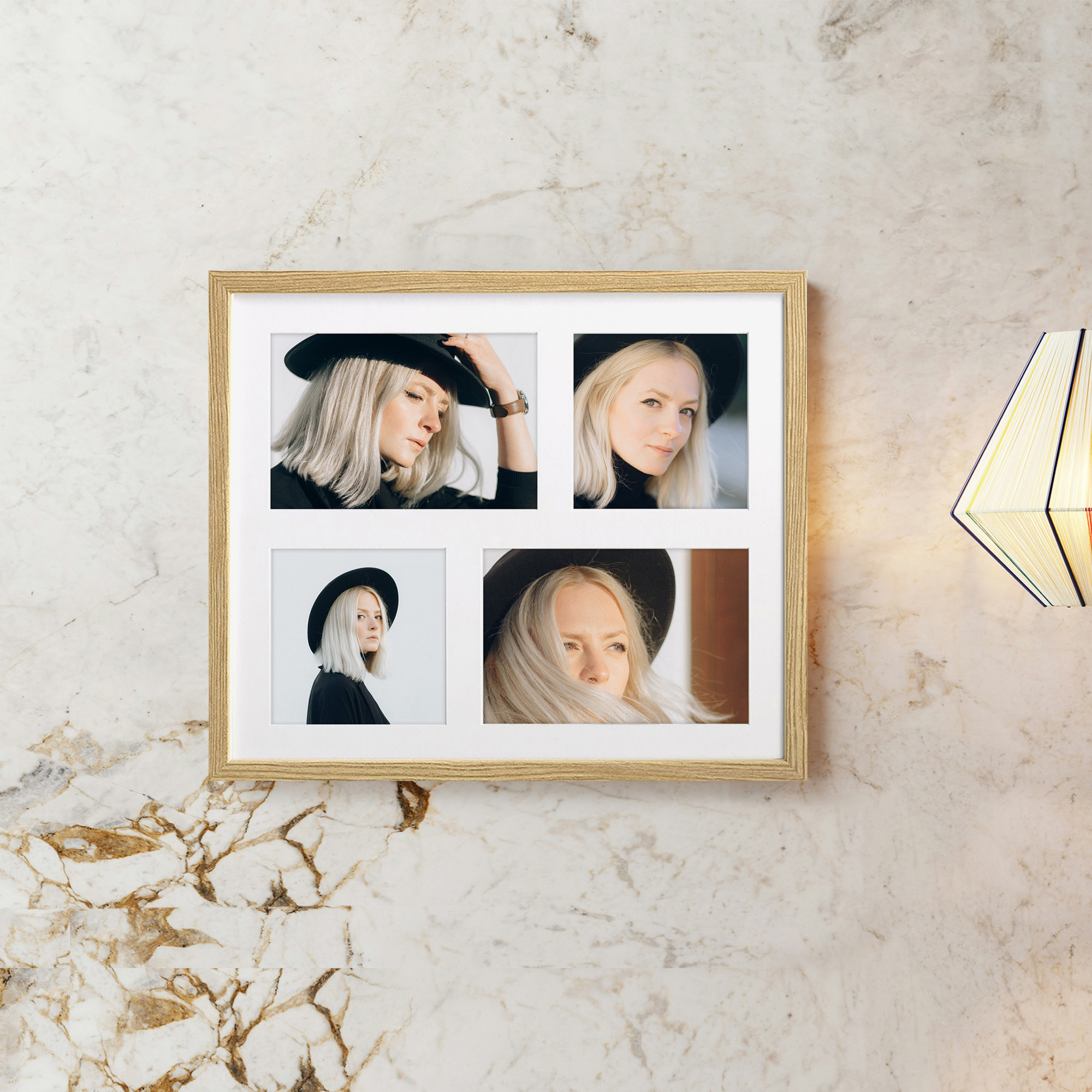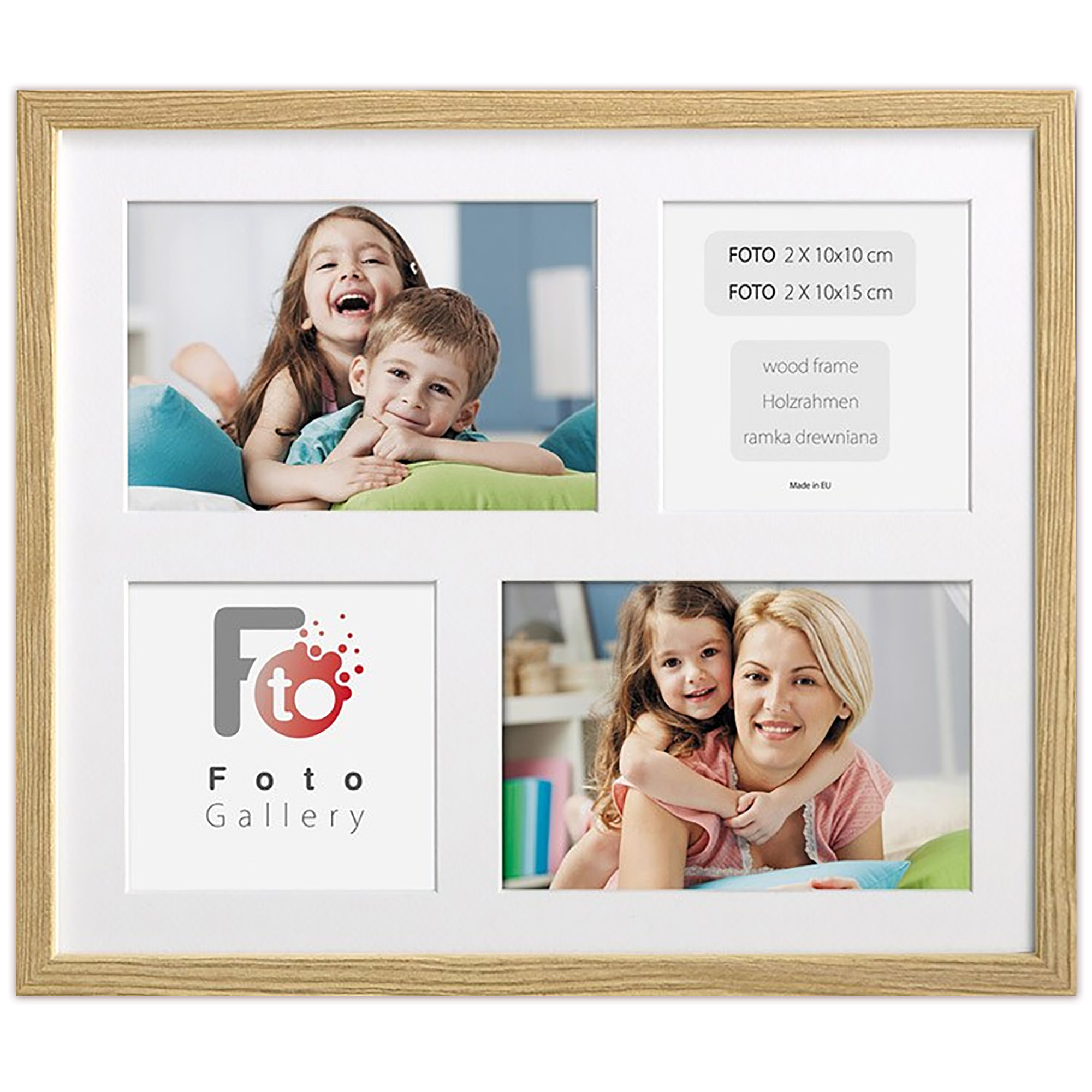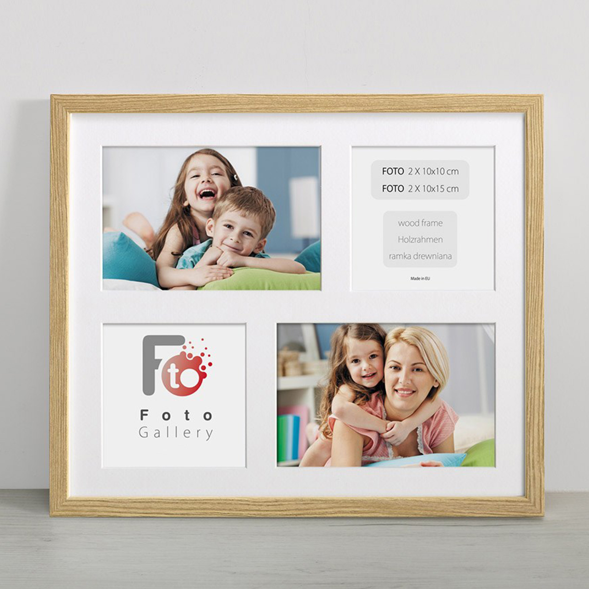 - Foto galeria drewniana ramka z passe partout na kilka zdjęć. Do oprawy zdjęć 2 x 10x10cm, 2 x 10x15cm. Model: Natural 26x31