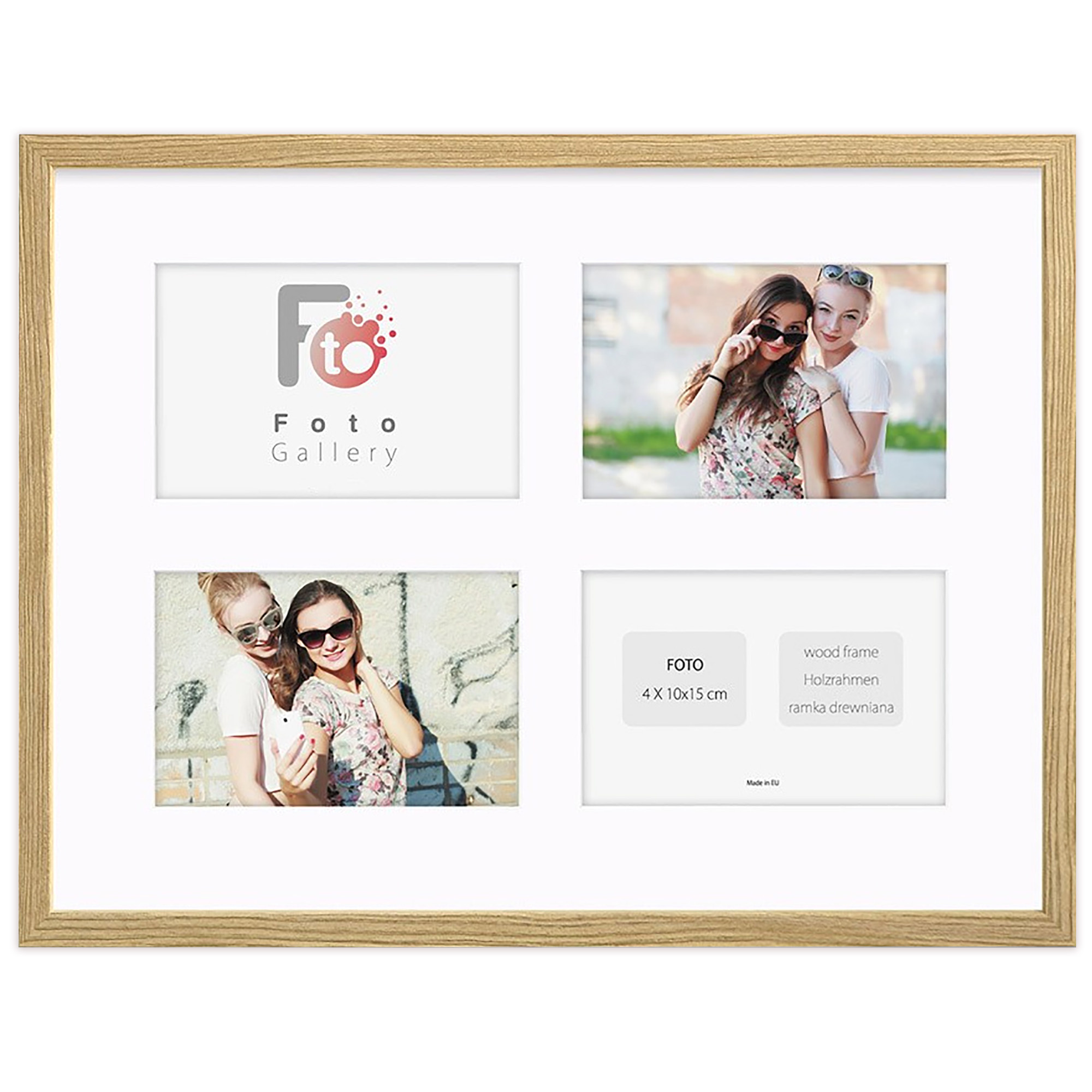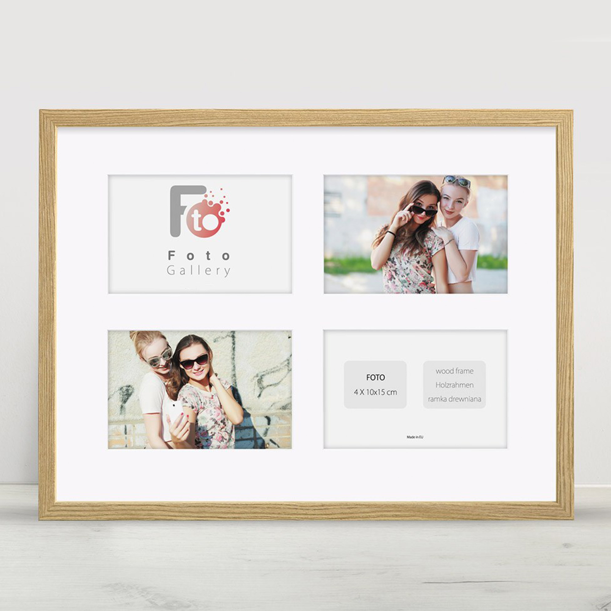 • Foto galeria drewniana ramka z passe partout na kilka zdjęć. Do oprawy zdjęć 4 x 10x15cm. Model: Natural 30x40 A
