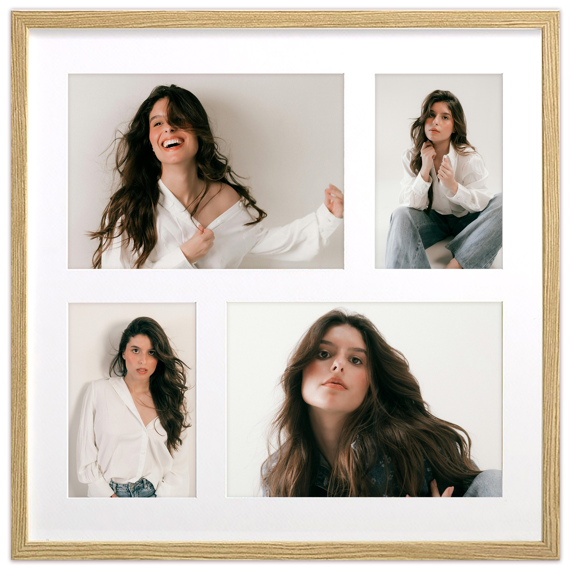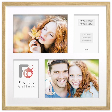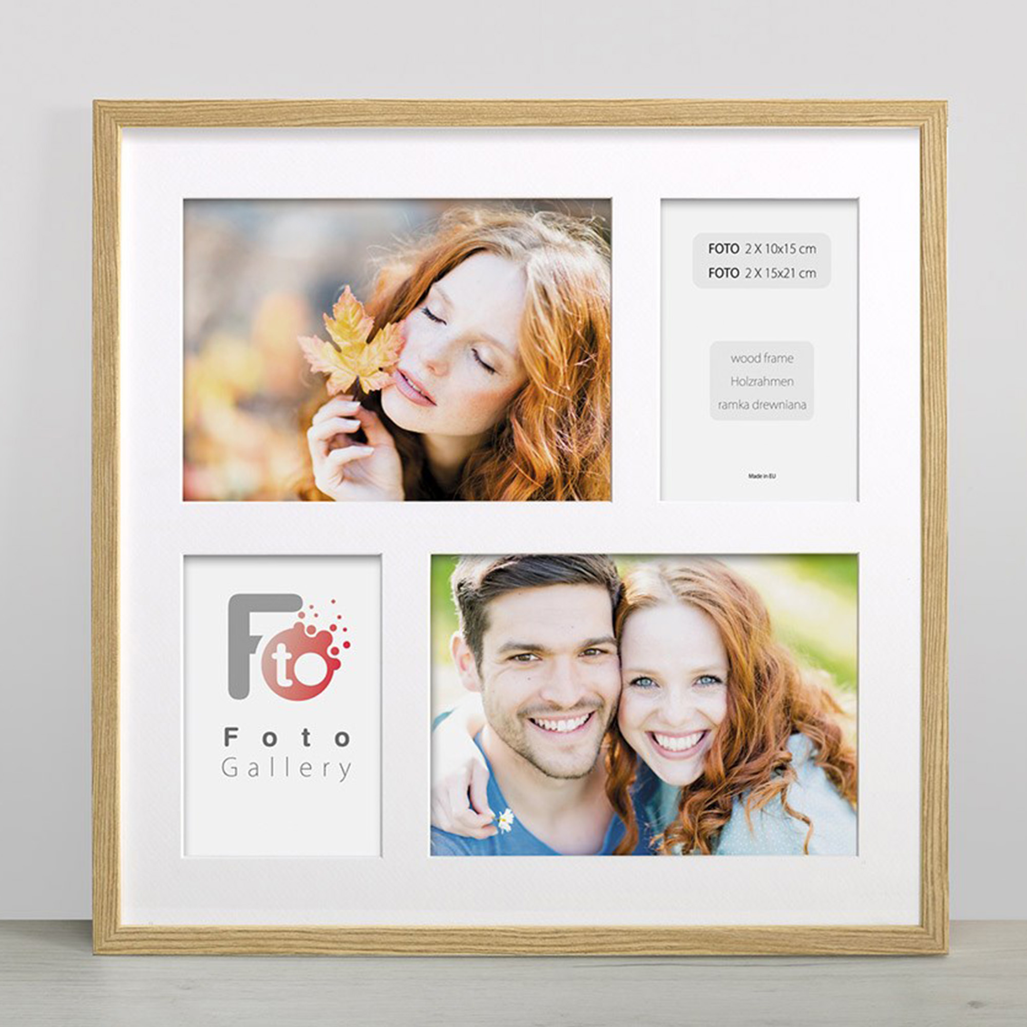 - Foto galeria drewniana ramka z passe partout na kilka zdjęć. Do oprawy zdjęć 2 x 15x21cm, 2 x 10x15cm. Model: Natural 39x39