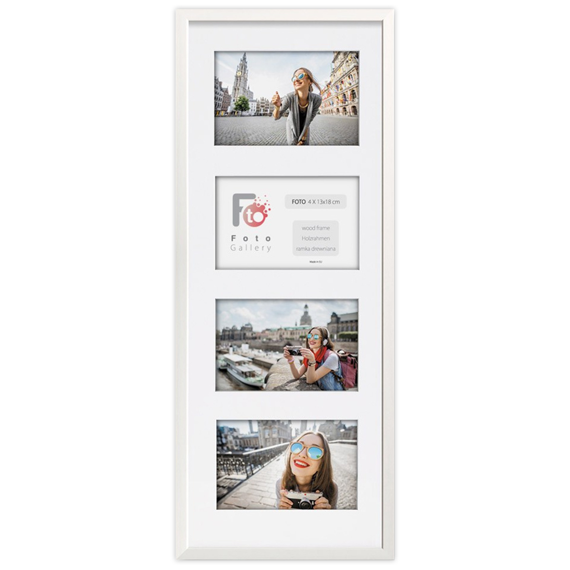 - Foto galeria drewniana ramka z passe partout na kilka zdjęć. Do oprawy zdjęć 4 x 13x18cm. Model: White 23x66