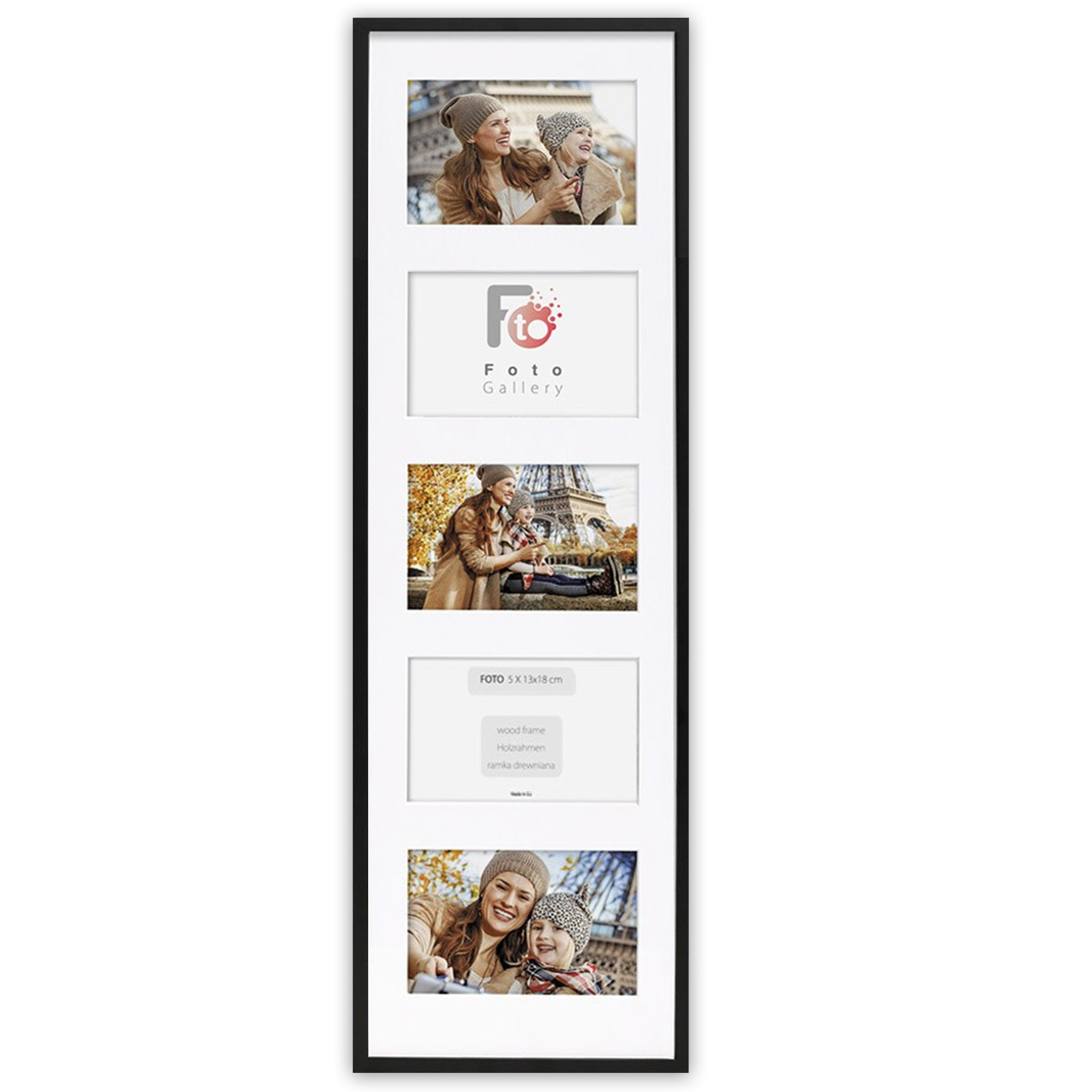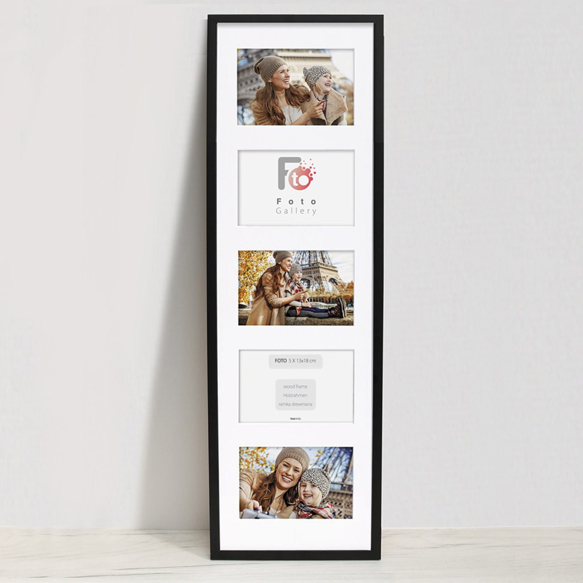 • Foto galeria drewniana ramka z passe partout na kilka zdjęć. Do oprawy zdjęć 5 x 13x18cm. Model: Black 23x81
