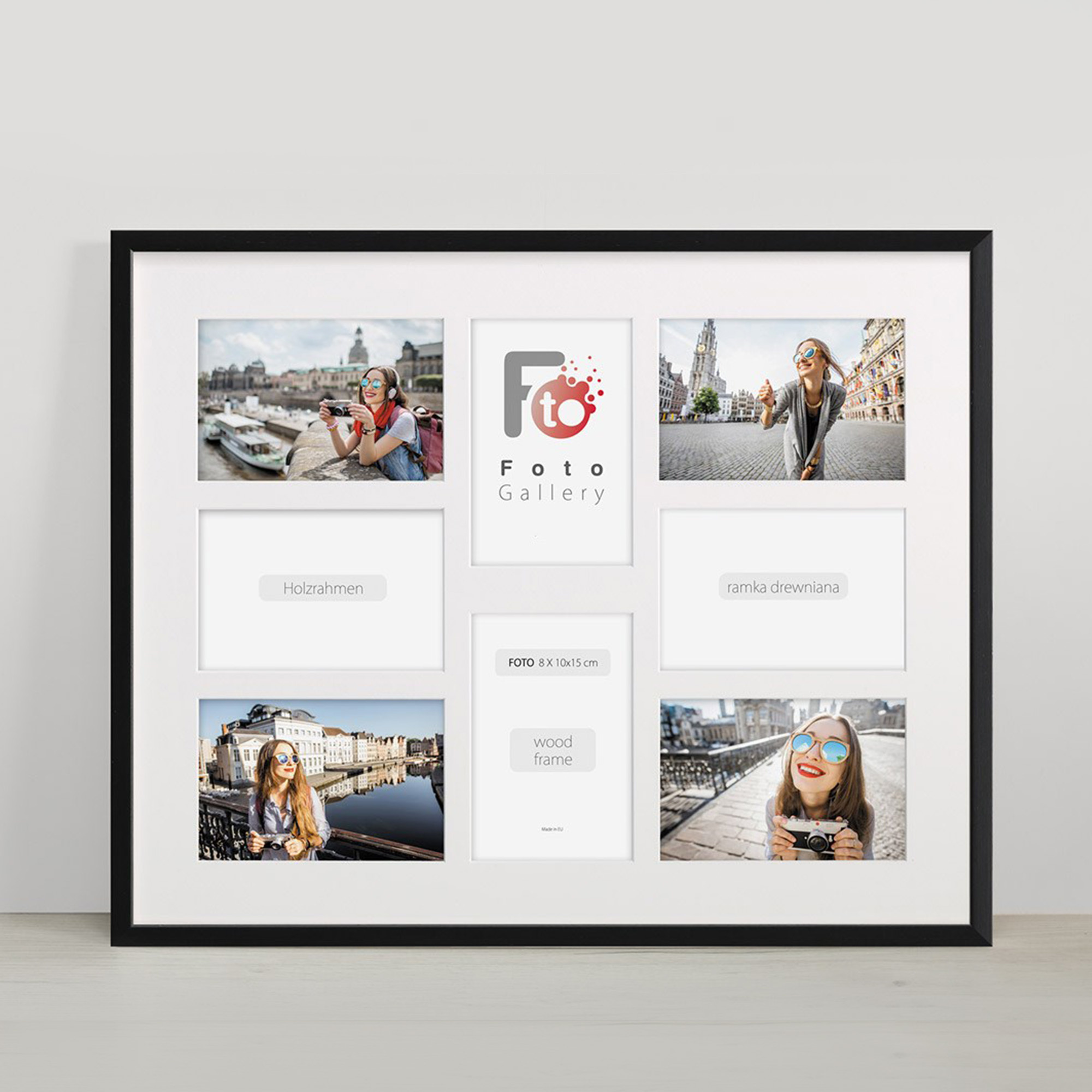 - Foto galeria drewniana ramka z passe partout na kilka zdjęć. Do oprawy zdjęć 8 x 10x15cm. Model: Black 40x50 A