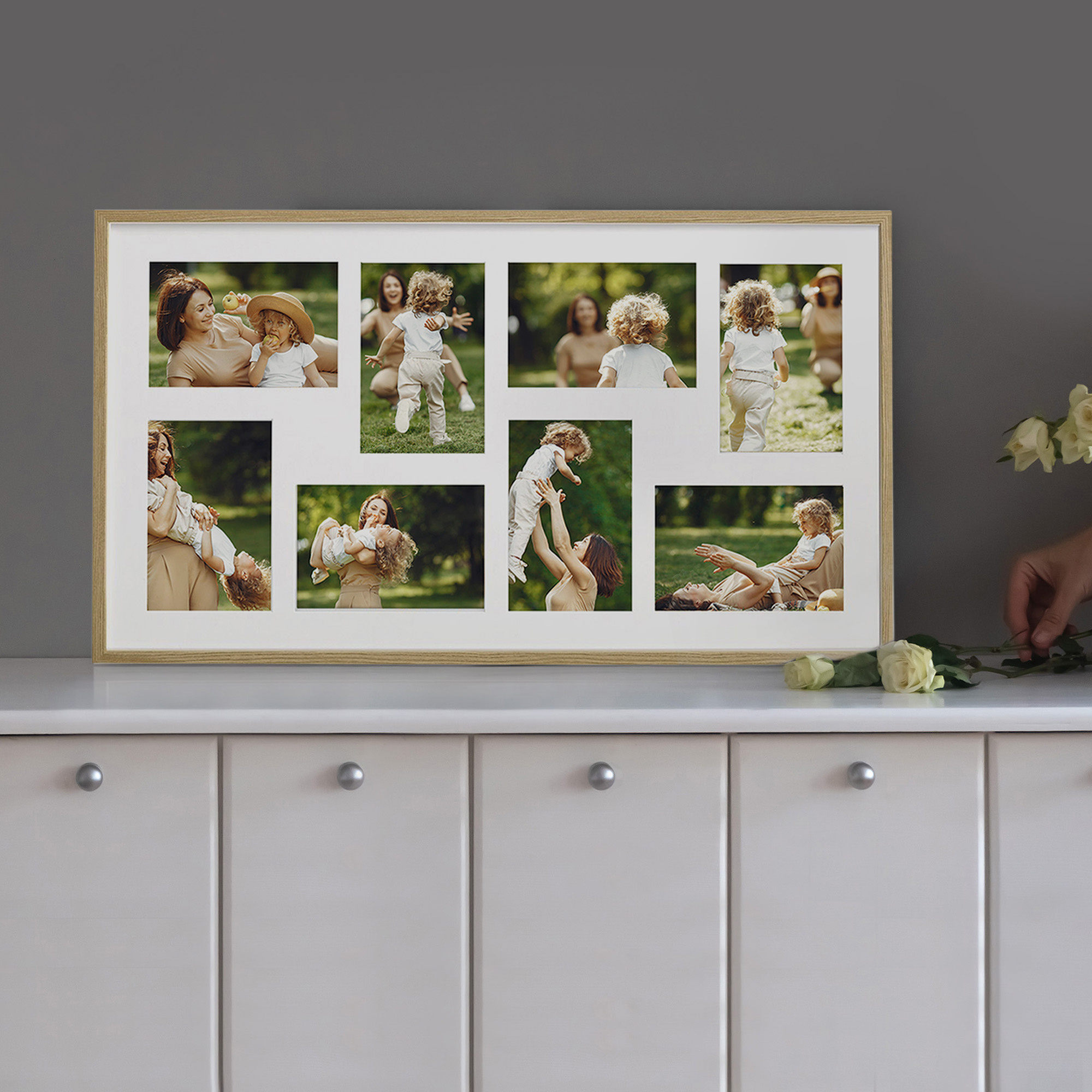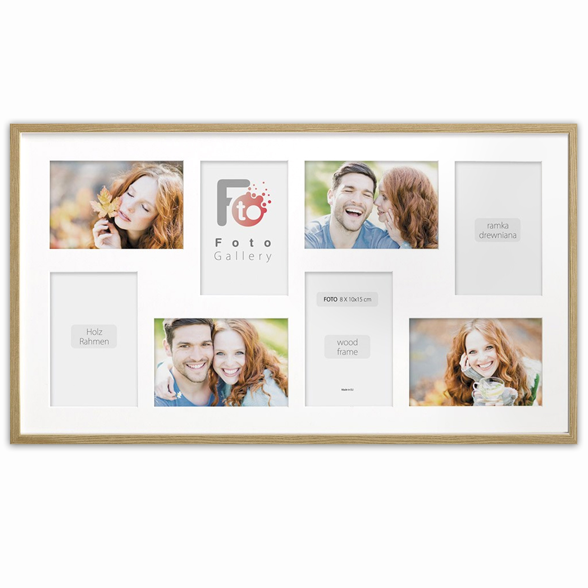 • Foto galeria drewniana ramka z passe partout na kilka zdjęć. Do oprawy zdjęć 8 x 10x15cm. Model: Natural 33x60
