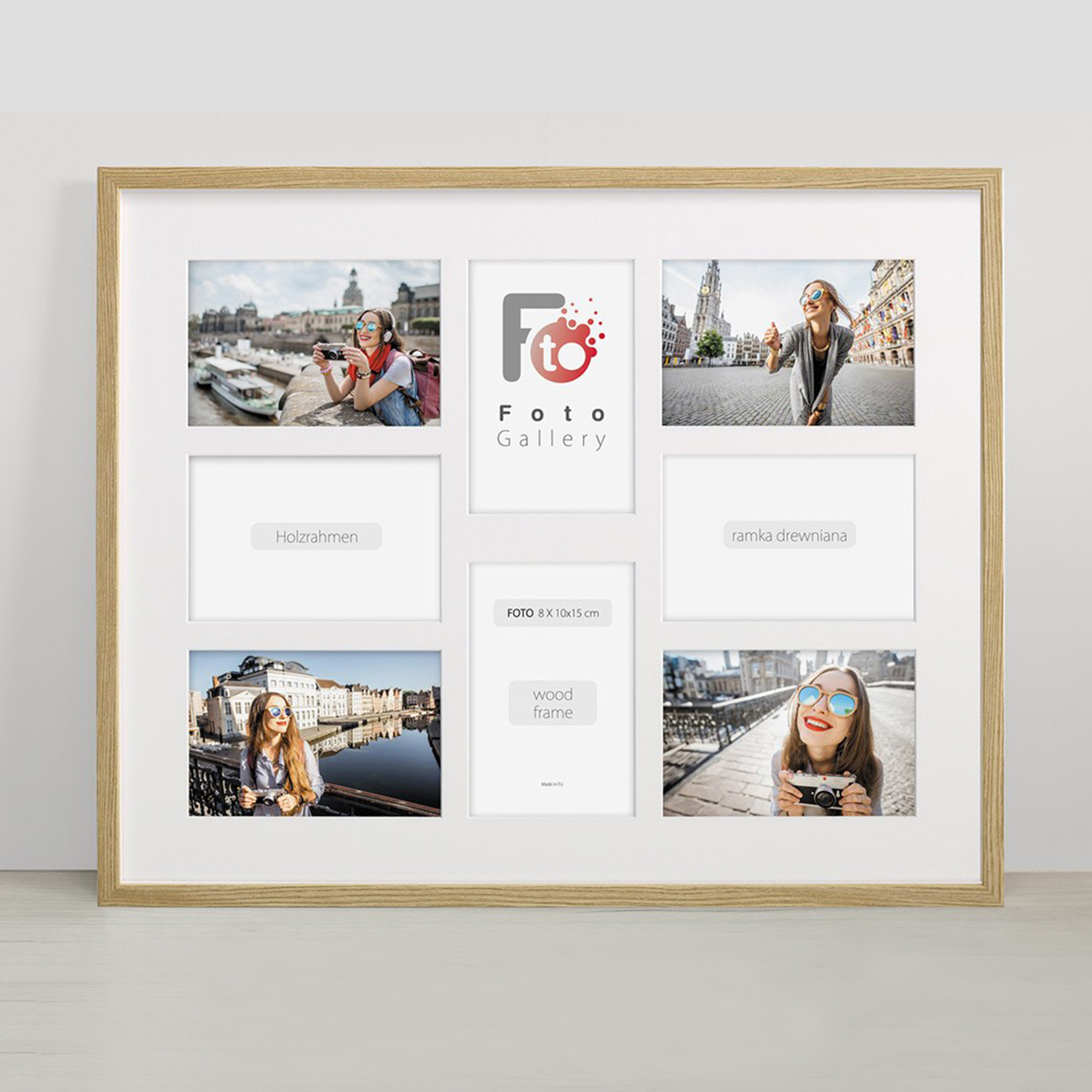 - Foto galeria drewniana ramka z passe partout na kilka zdjęć. Do oprawy zdjęć 8 x 10x15cm. Model: Natural 40x50 A