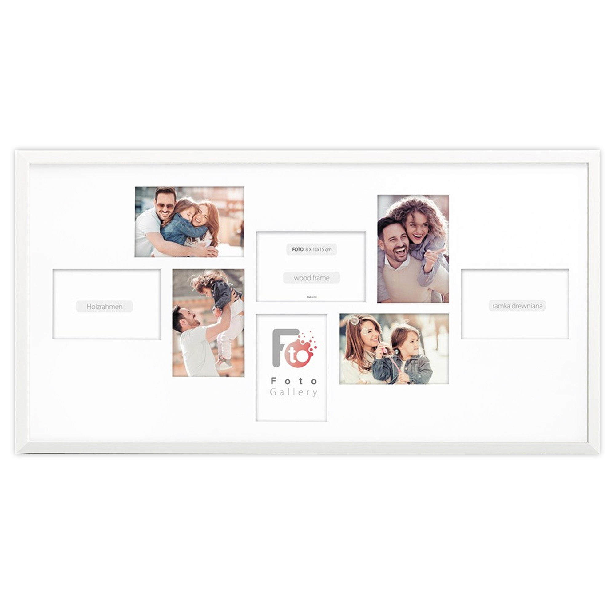 • Foto galeria drewniana ramka z passe partout na kilka zdjęć. Do oprawy zdjęć 8 x 10x15cm. Model: White 38x75