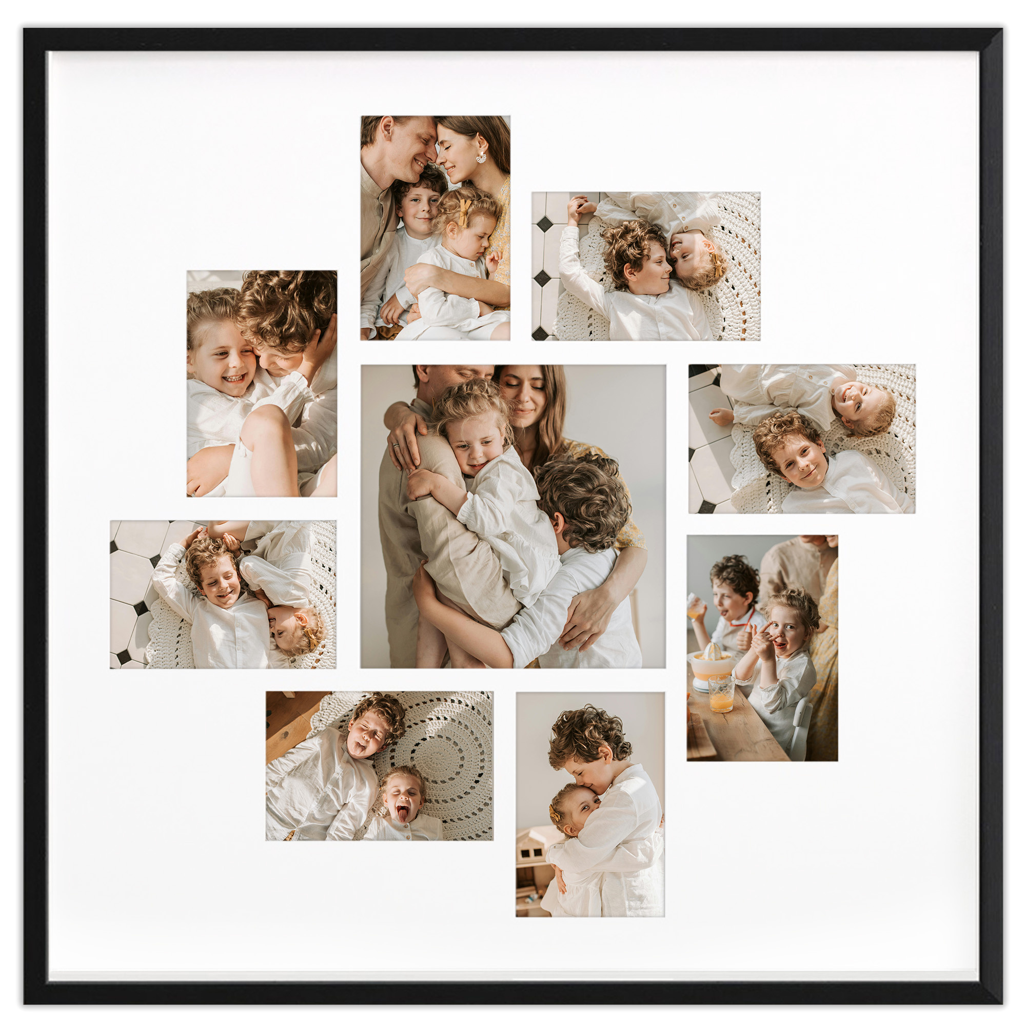 - Foto galeria drewniana ramka z passe partout na kilka zdjęć. Do oprawy zdjęć 1 x 20x20cm, 8 x 10x15cm. Model: Black 60x60