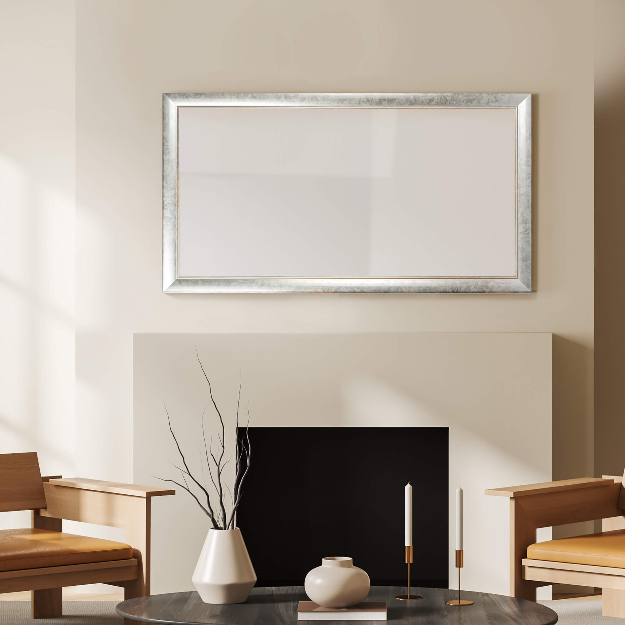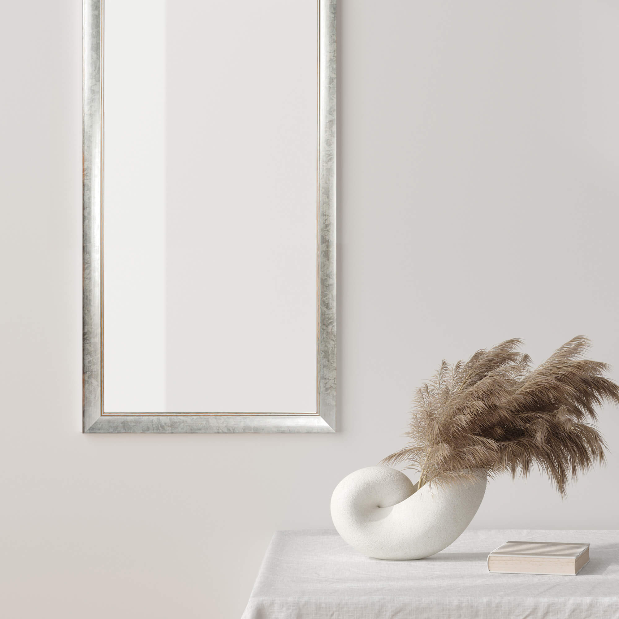 Lustro w prostokątnej ramie z drewna. Przód oprawy: Tafla lustrzana, o grubości 4 mm . Wieszaki mocowane w ramie z możliwością zawieszenia w pionie i poziomie. Rozmiar lustra z ramą: 81 x 150 cm. Rozmiar w świetle ramy: 67 x 136 cm. Opakowanie: Skrzynia drewniana z folią bąbelkową.