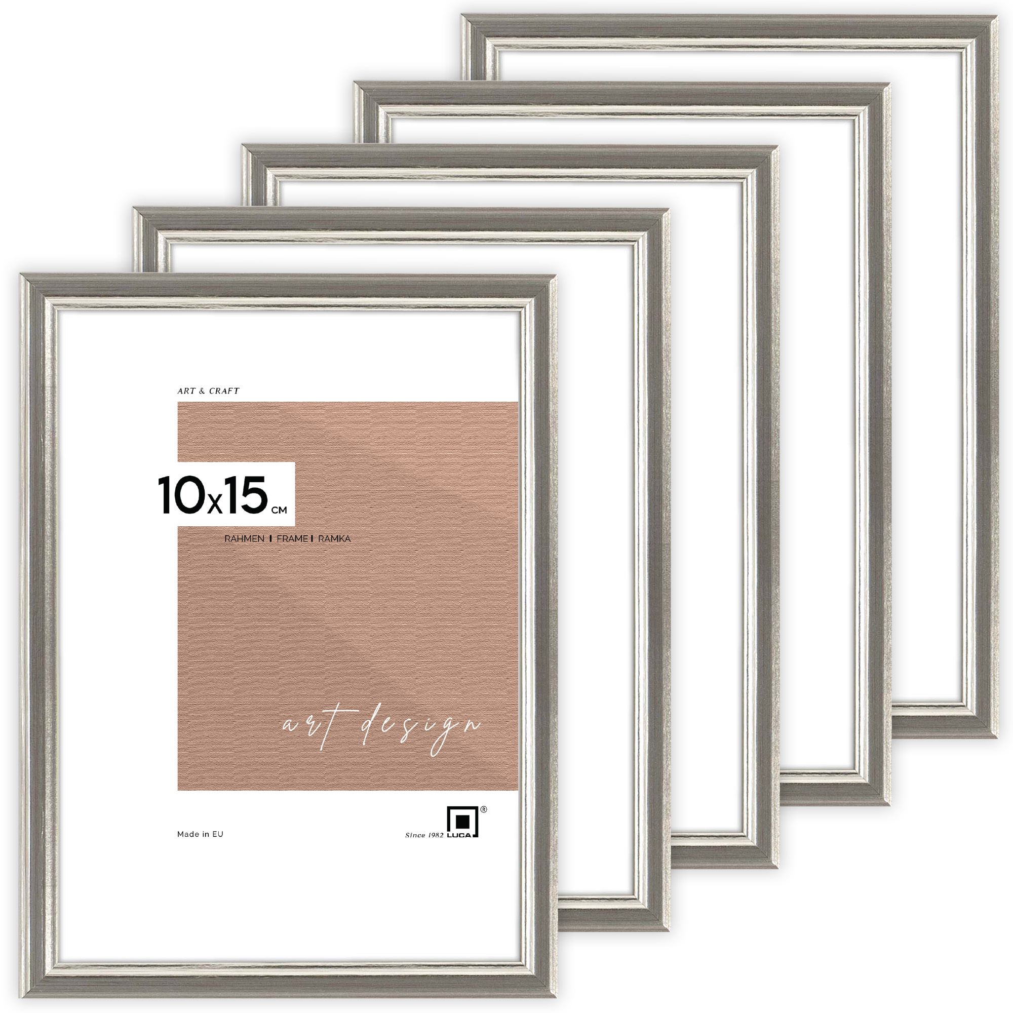 Pakiet 5 szt. srebrnych ramek drewnianych na zdjęcia DRWA FS 10x15 cm
