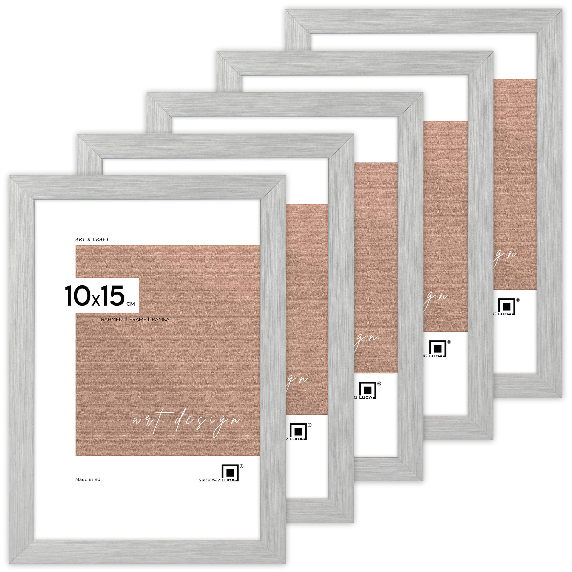 Pakiet 5 sztuk srebrnych ramek drewnianych PINIA S - 10x15 cm