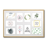 Fotogalerie z naturalnego drewna doskonale prezentują się w towarzystwie drewnianych półek na zdjęcia, ale też kwiatów, dlatego warto zaopatrzyć się również w kwietniki ścienne. Jeśli chcesz wzmocnić efekt dekoracyjny, w ramach, zamiast zdjęć, możesz umieścić grafiki przedstawiające rośliny czy pejzaże. W ten sposób stworzysz ozdobę ściany, która będzie nawiązywać do natury i jednocześnie sprawi, że wnętrze stanie się przytulne i rodzinne – dokładnie takie, o jakim marzysz!