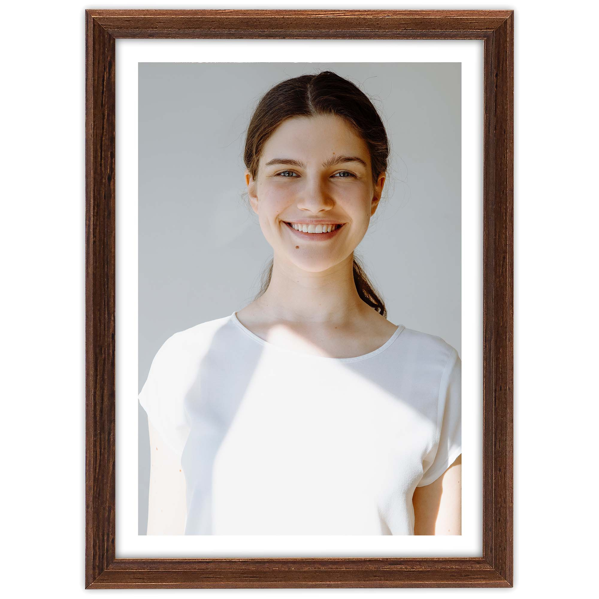 Ramka na zdjęcia z serii DRWA 4 w kolorze brązowym to nowoczesny styl z nutką klasyki. W sposób unikalny i stylowy oprawi zdjęcie, dyplom, jak i dowolne grafiki. Efekt delikatnego profilu w połączeniu z pięknym odcieniem brązowego koloru pozwoli wyeksponować oprawiony przedmiot w sposób zdumiewający. Modna stylistyka z delikatnie zaznaczoną ramą o szerokości 13 mm i wysokości 11 mm będzie przykuwać uwagę i zainteresuje każdego na oprawione zdjęcie lub grafikę.