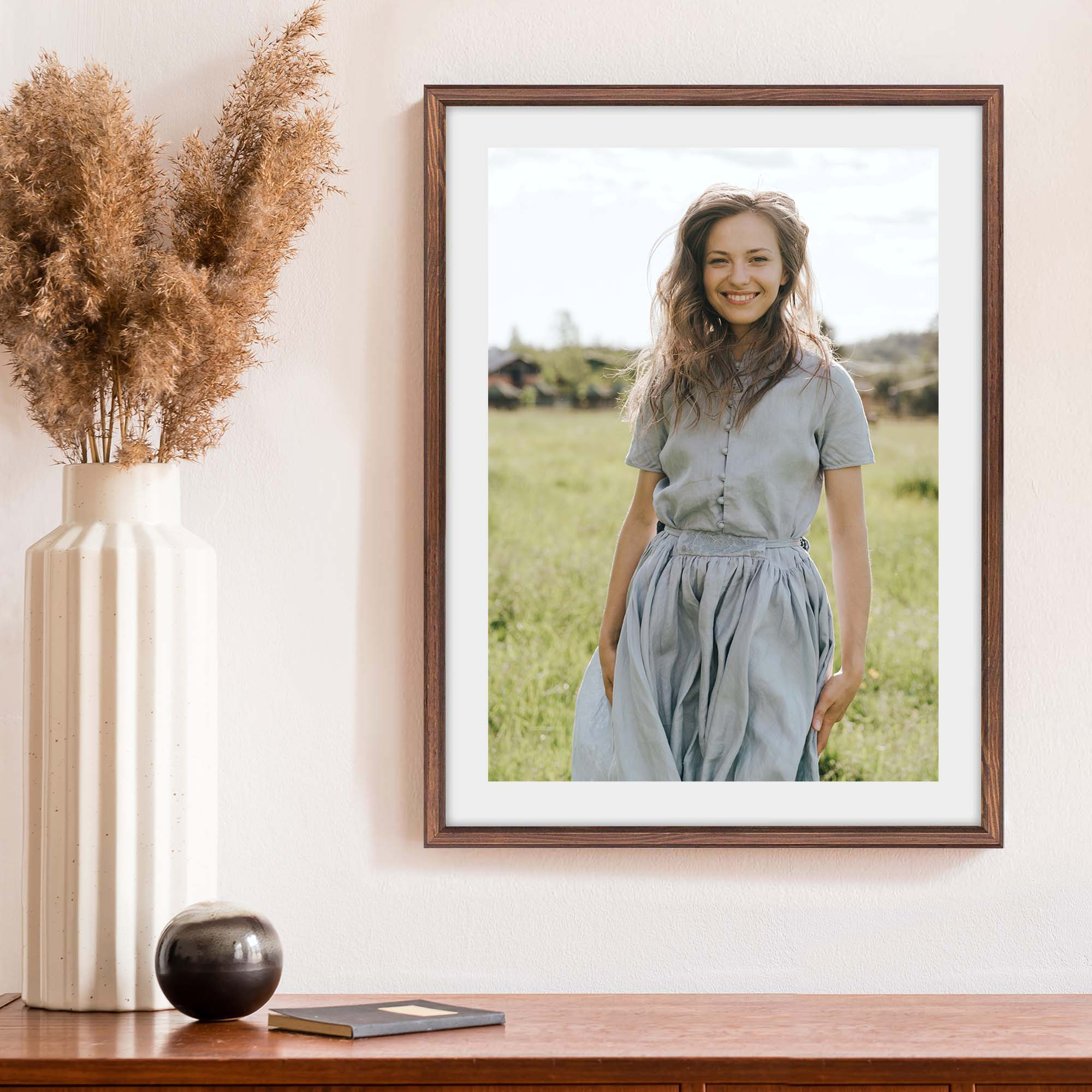 Ramka na zdjęcia z serii DRWA 4 w kolorze brązowym to nowoczesny styl z nutką klasyki. W sposób unikalny i stylowy oprawi zdjęcie, dyplom, jak i dowolne grafiki. Efekt delikatnego profilu w połączeniu z pięknym odcieniem brązowego koloru pozwoli wyeksponować oprawiony przedmiot w sposób zdumiewający. Modna stylistyka z delikatnie zaznaczoną ramą o szerokości 13 mm i wysokości 11 mm będzie przykuwać uwagę i zainteresuje każdego na oprawione zdjęcie lub grafikę.