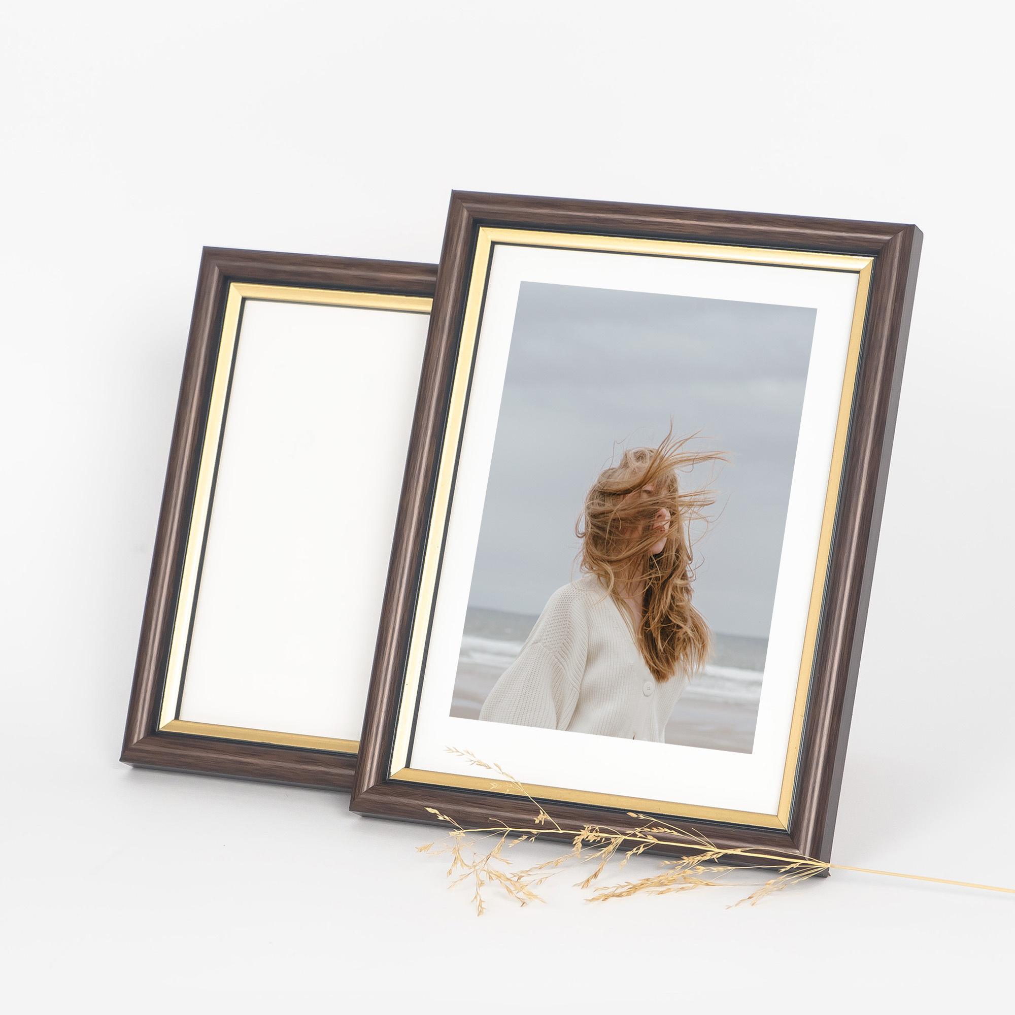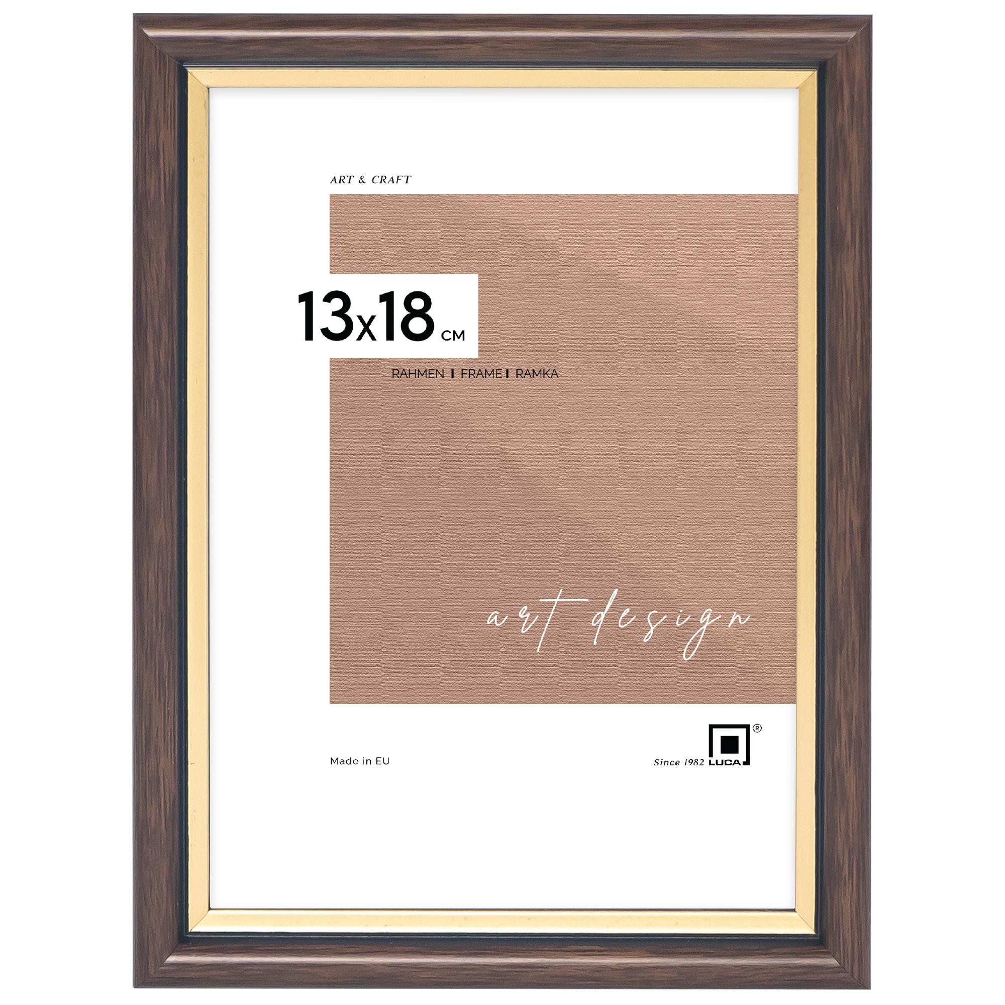 Brązowa ramka na zdjęcia z pięknym złotym paskiem DRI CL 4 - 13x18 cm