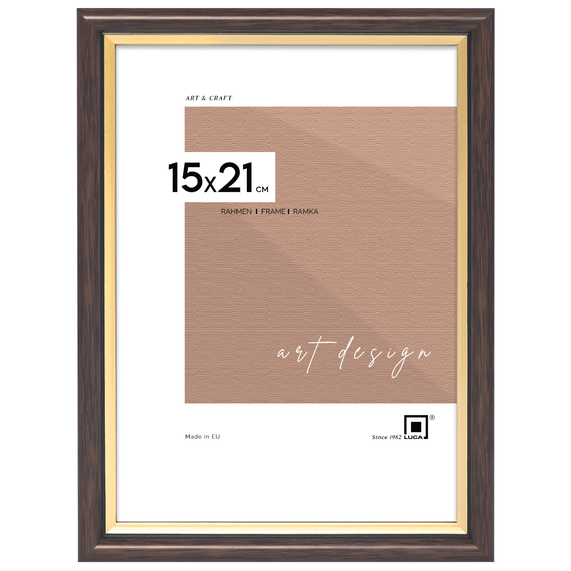 Brązowa ramka na zdjęcia z pięknym złotym paskiem DRI CL 4 - 15x21 cm