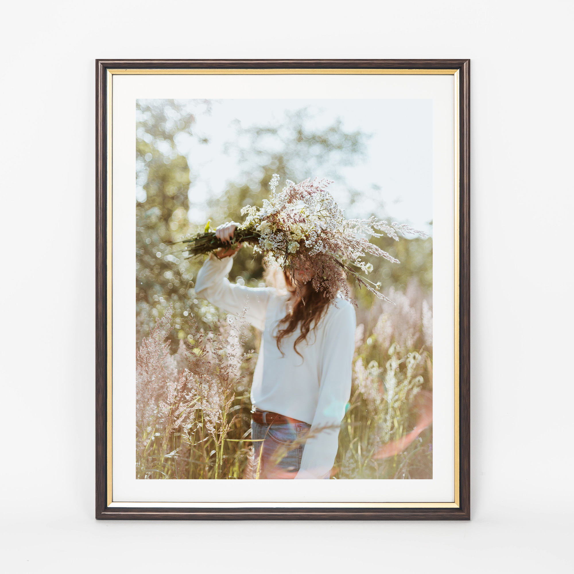 Brązowa ramka drewniana ze złotym paskiem DRI CL 4 40x50 cm
