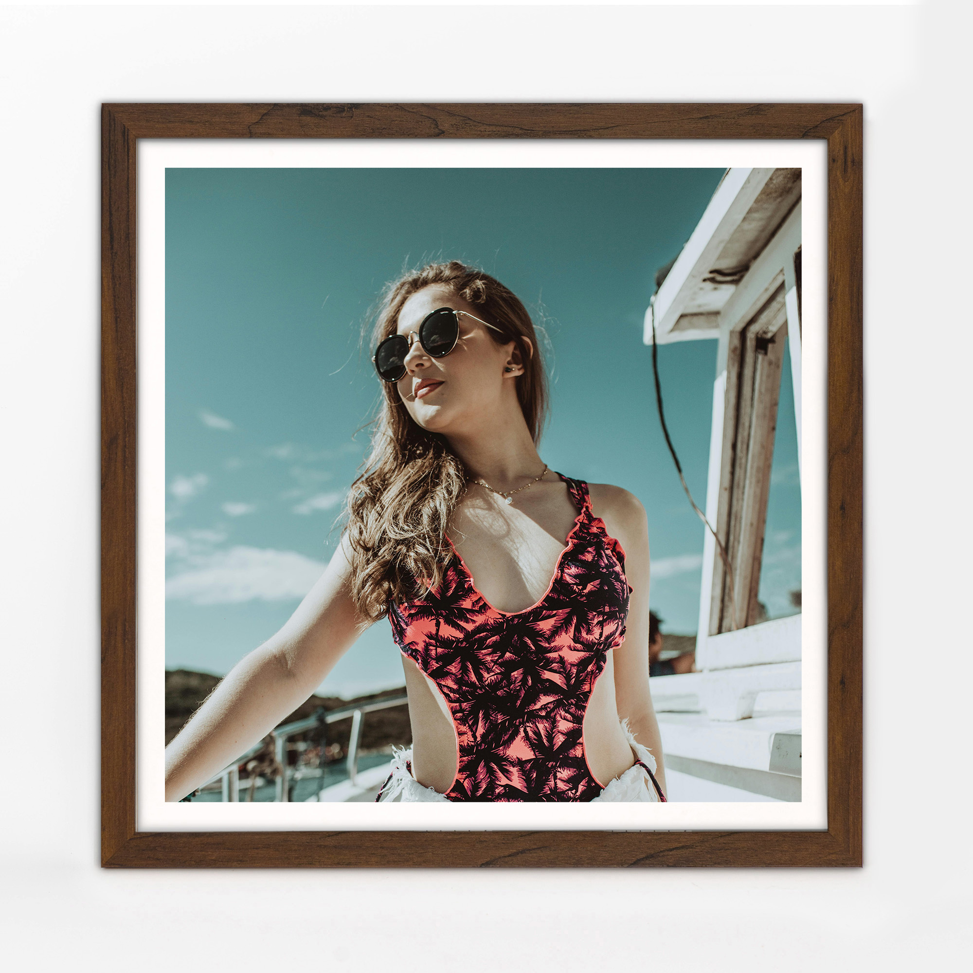 Ramka precyzyjnie wykonana z EKO MDF w kolorze brązowym. Modna stylistyka i widoczna rama 20 mm przykuje uwagę każdej osoby. Świetnie spisze się do oprawy plakatów, grafik i zdjęć.