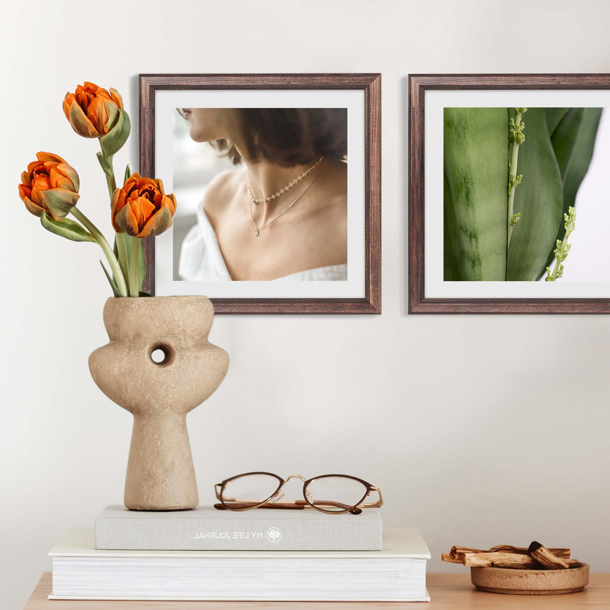 Ramka na zdjęcia z serii DRWA 44 w kolorze ciemnobrązowym to nowoczesny styl z nutką klasyki. W sposób unikalny i stylowy oprawi zdjęcie, dyplom, jak i dowolne grafiki. Efekt delikatnego profilu w połączeniu z głębokim ciemnym brązem pozwoli wyeksponować oprawiony przedmiot w sposób zdumiewający. Modna stylistyka z delikatnie zaznaczoną ramą o szerokości 13 mm i wysokości 11 mm będzie przykuwać uwagę i zainteresuje każdego na oprawione zdjęcie lub grafikę.