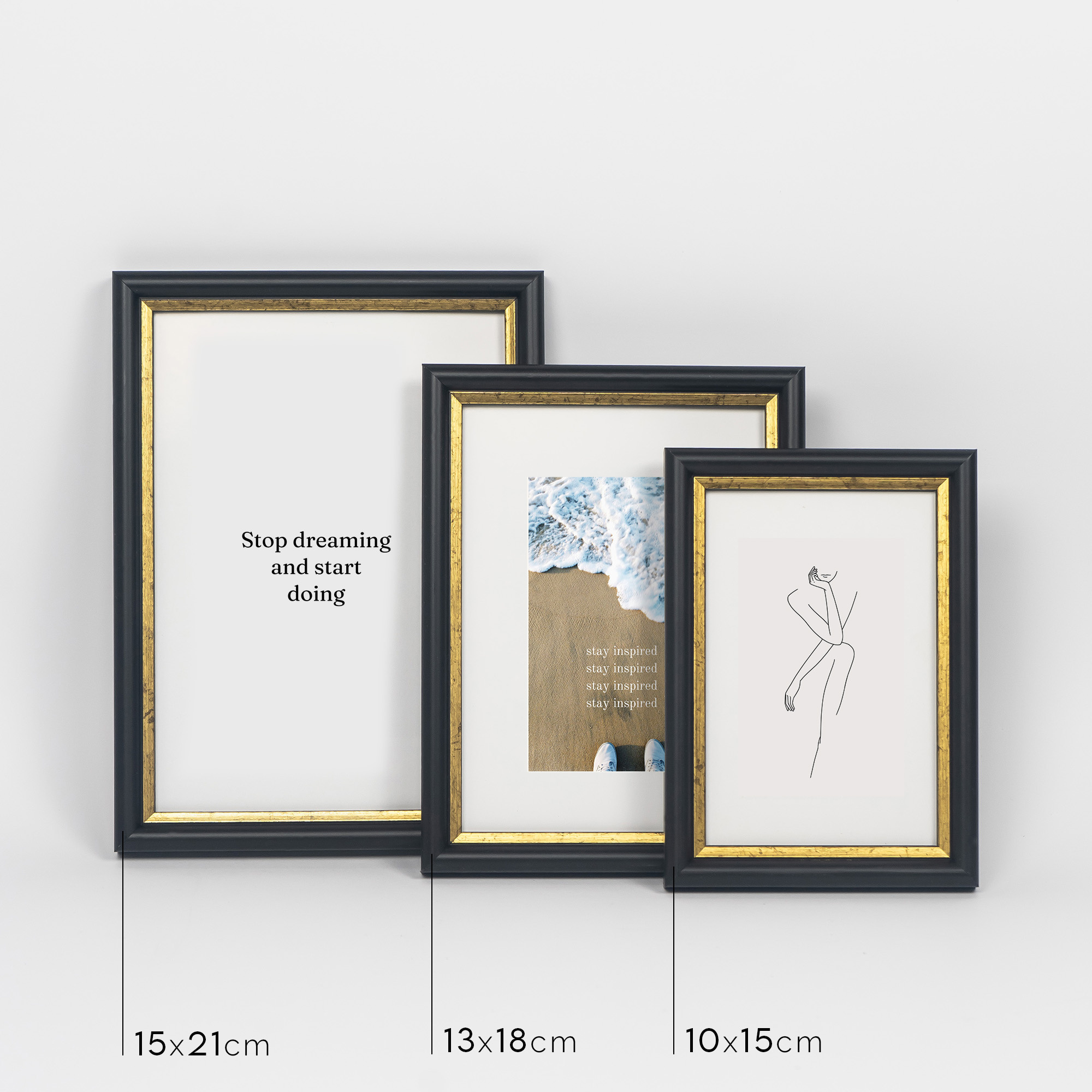 Czarna ramka na zdjęcia z pięknym złotym paskiem DRI CL 2 - 13x18 cm