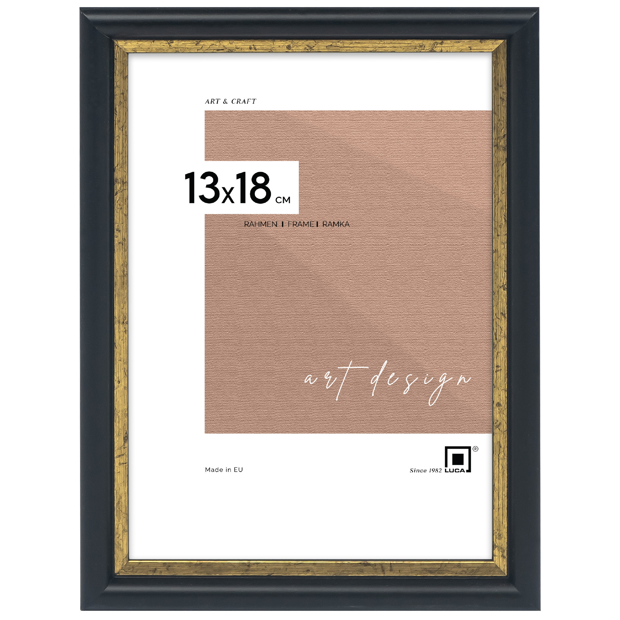 Opinie o Czarna ramka drewniana ze złotym paskiem DRI CL 2 13x18 cm