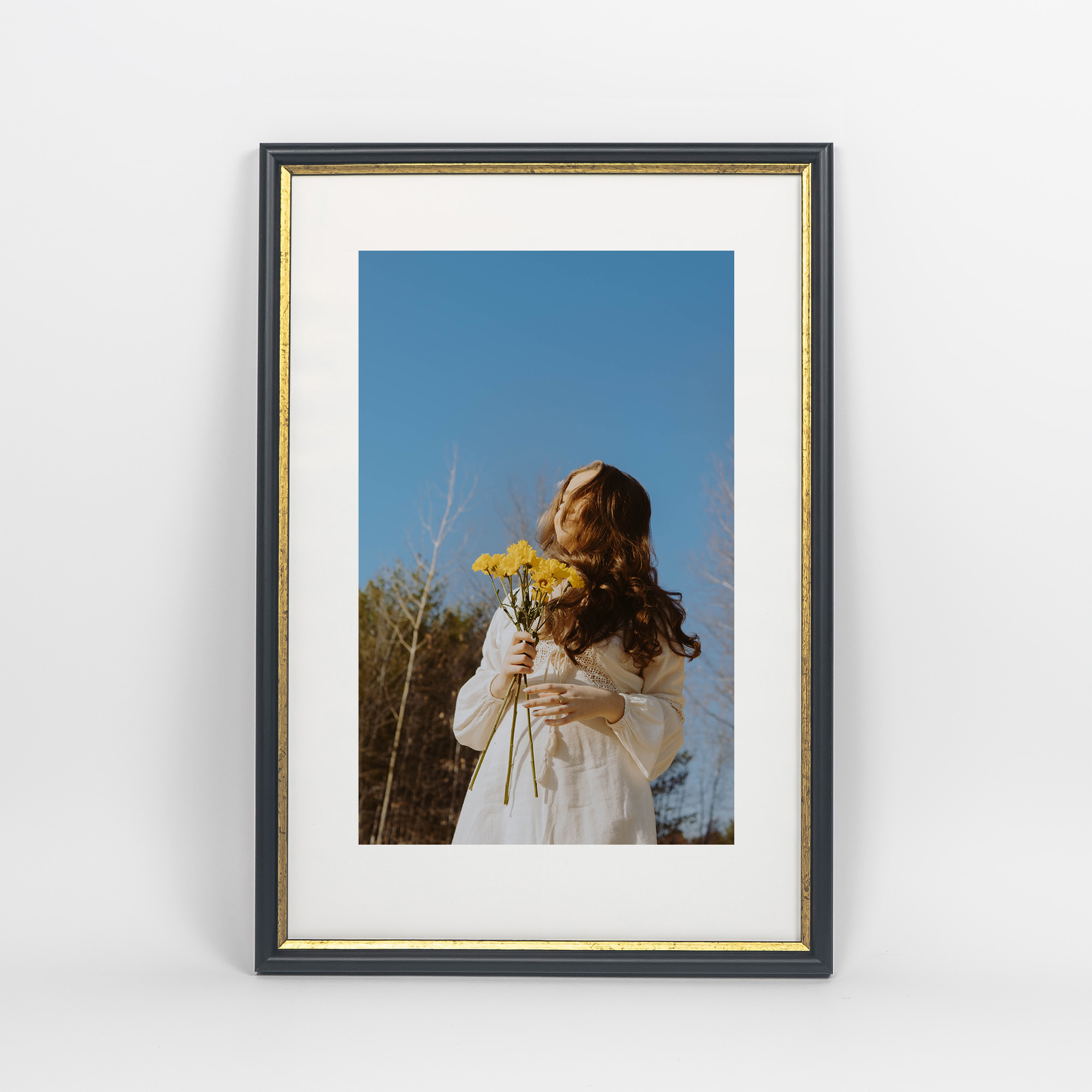 Czarna ramka na zdjęcia z pięknym złotym paskiem DRI CL 2 - 30x45 cm