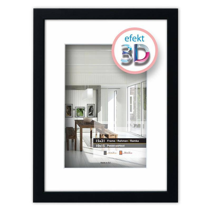 Ramki z Efektem 3D charakteryzują się dystansem 5 mm. Nawet kilkumetrowy dystans między passe-partout, a zdjęciem znacznie zwiększa wrażenie głębi obrazu eksponowanego zdjęcia. Efekt przestrzenności wzmacniany jest przez cień jaki powstaje między zdjęciem a passe-partout. Efekt oprawionego zdjęcia, dyplomu lub grafiki jest zdumiewający.