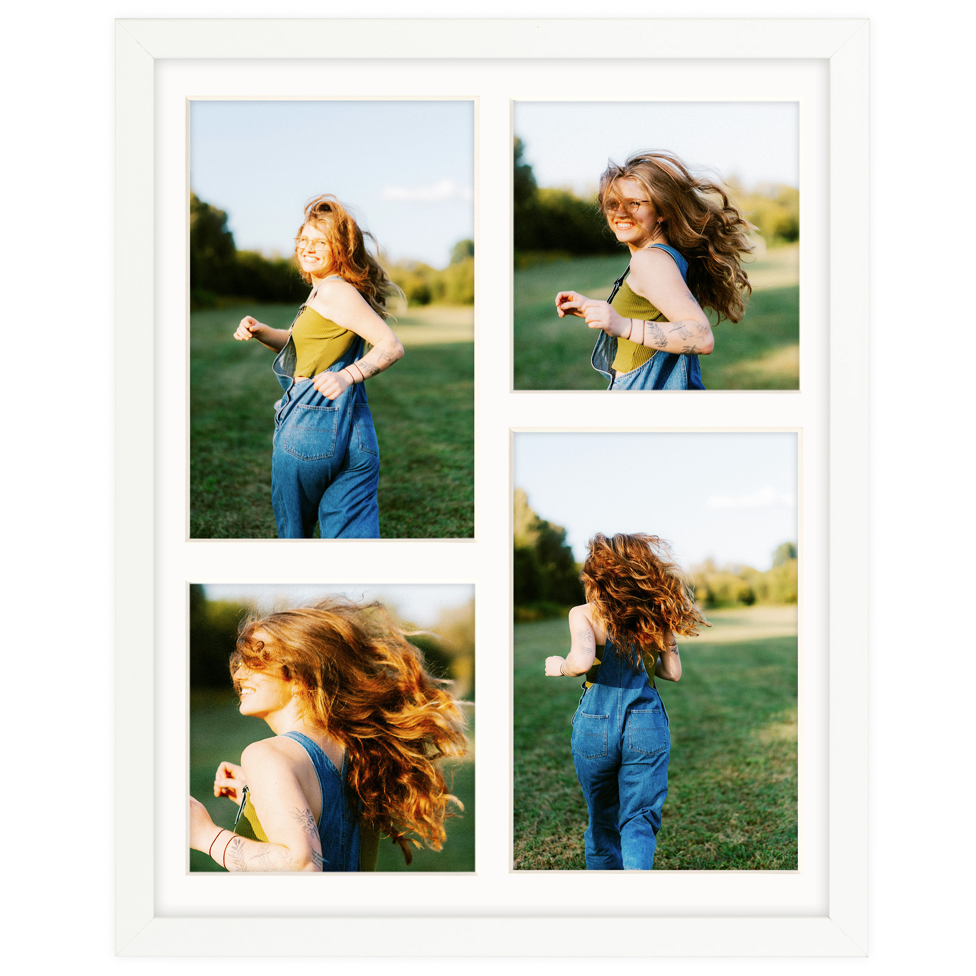 Ramka na 4 zdjęcia - Foto Galeria 24x30 cm (wymiar ramy wewnętrzny) w kolorze białym odpowiednia do oprawy dwóch zdjęć o formacie 10x15 cm i dwóch o formacie 10x10 cm. Kolor ramki biały z jasnym Passe Partout