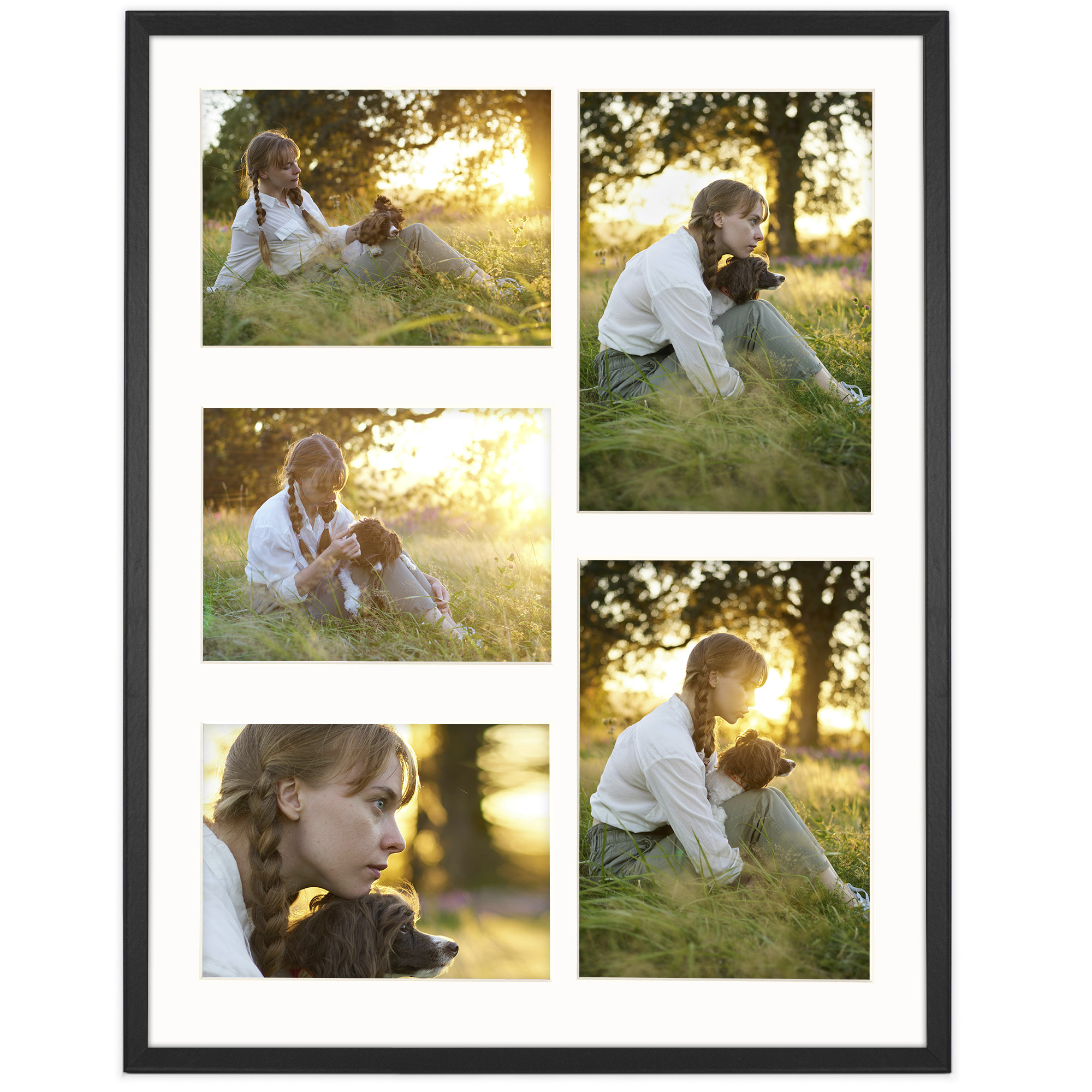 Ramka na 5 zdjęć - Foto Galeria 40x50 cm (wymiar ramy wewnętrzny) w kolorze czarnym odpowiednia do oprawy pięciu zdjęć: 3x 13x18 cm i 2x 15x21 cm. Kolor ramki czarny z jasnym Passe Partout
