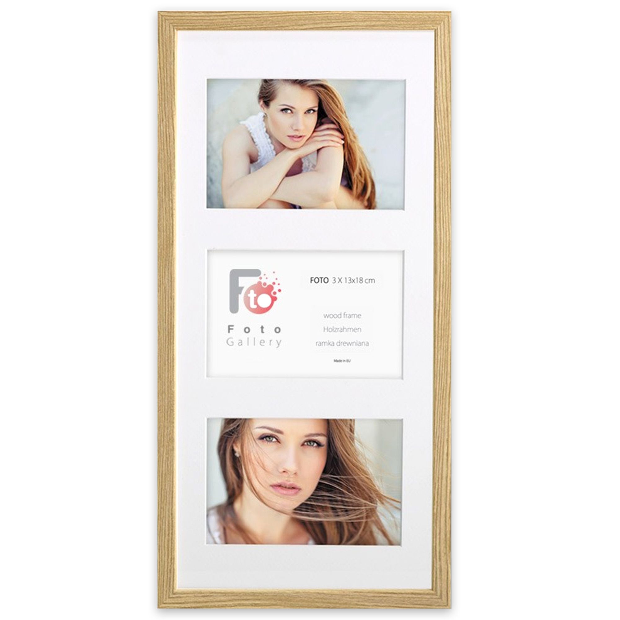 - Foto galeria drewniana ramka z passe partout na kilka zdjęć. Do oprawy zdjęć 3 x 13x18cm. Model: Natural 23x50