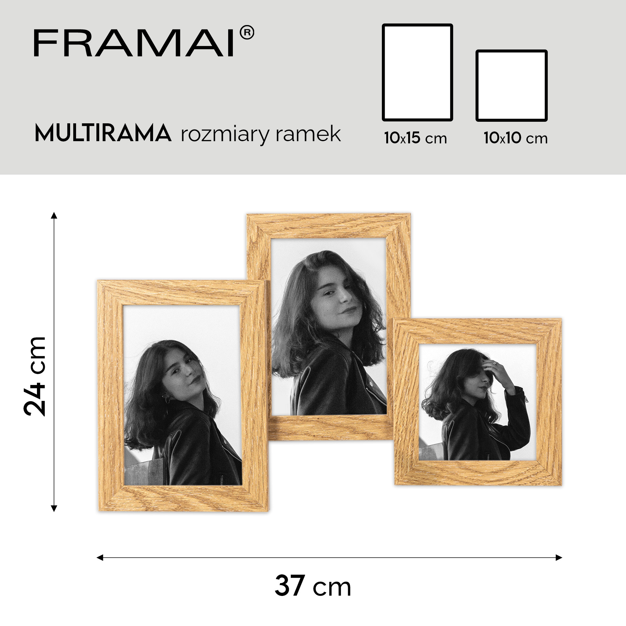 Multirama HEN 01 24x37 cm z ekologicznego MDF z nietłukącą się plexi – ramka na 3 zdjęcia 10x15 cm, 10x10 cm.