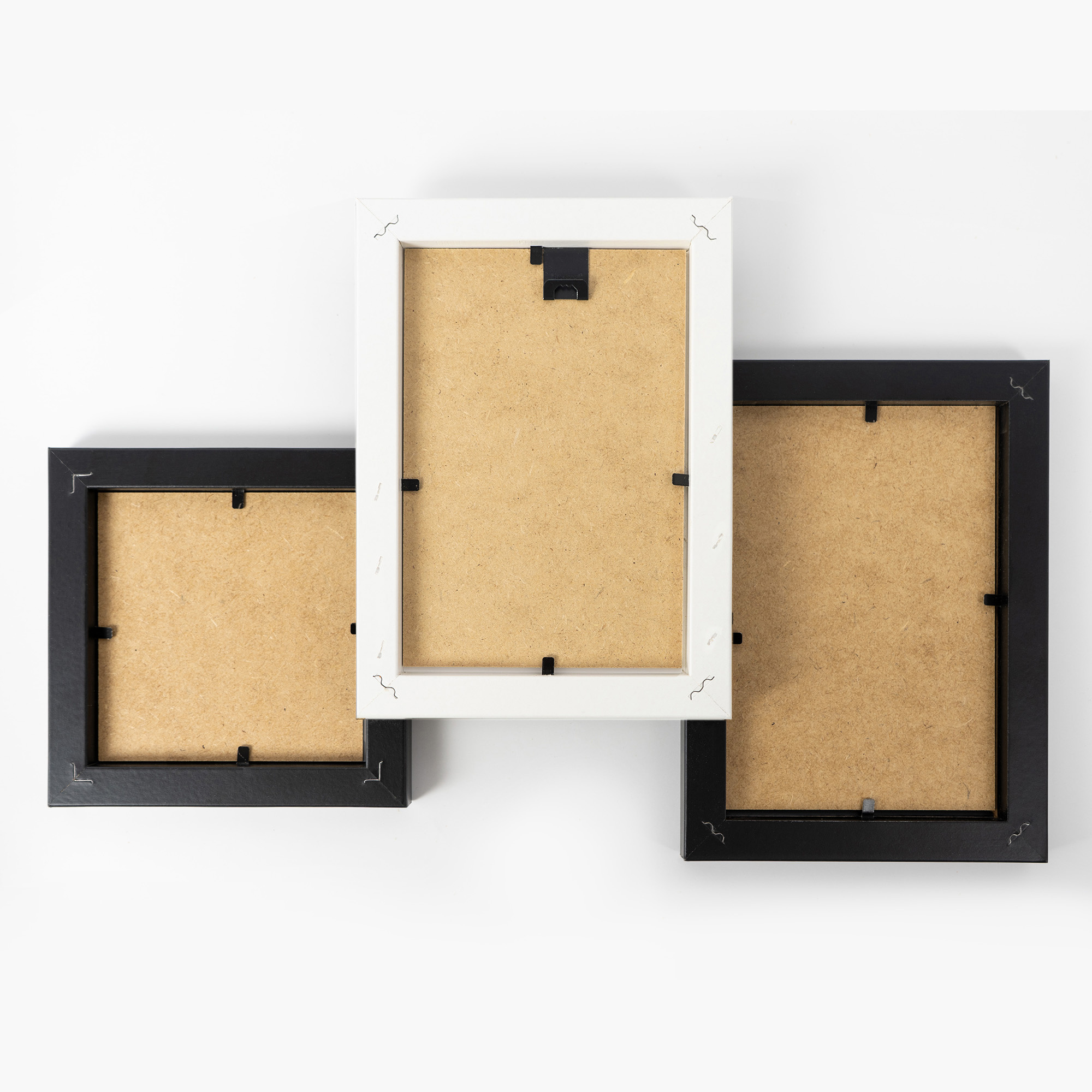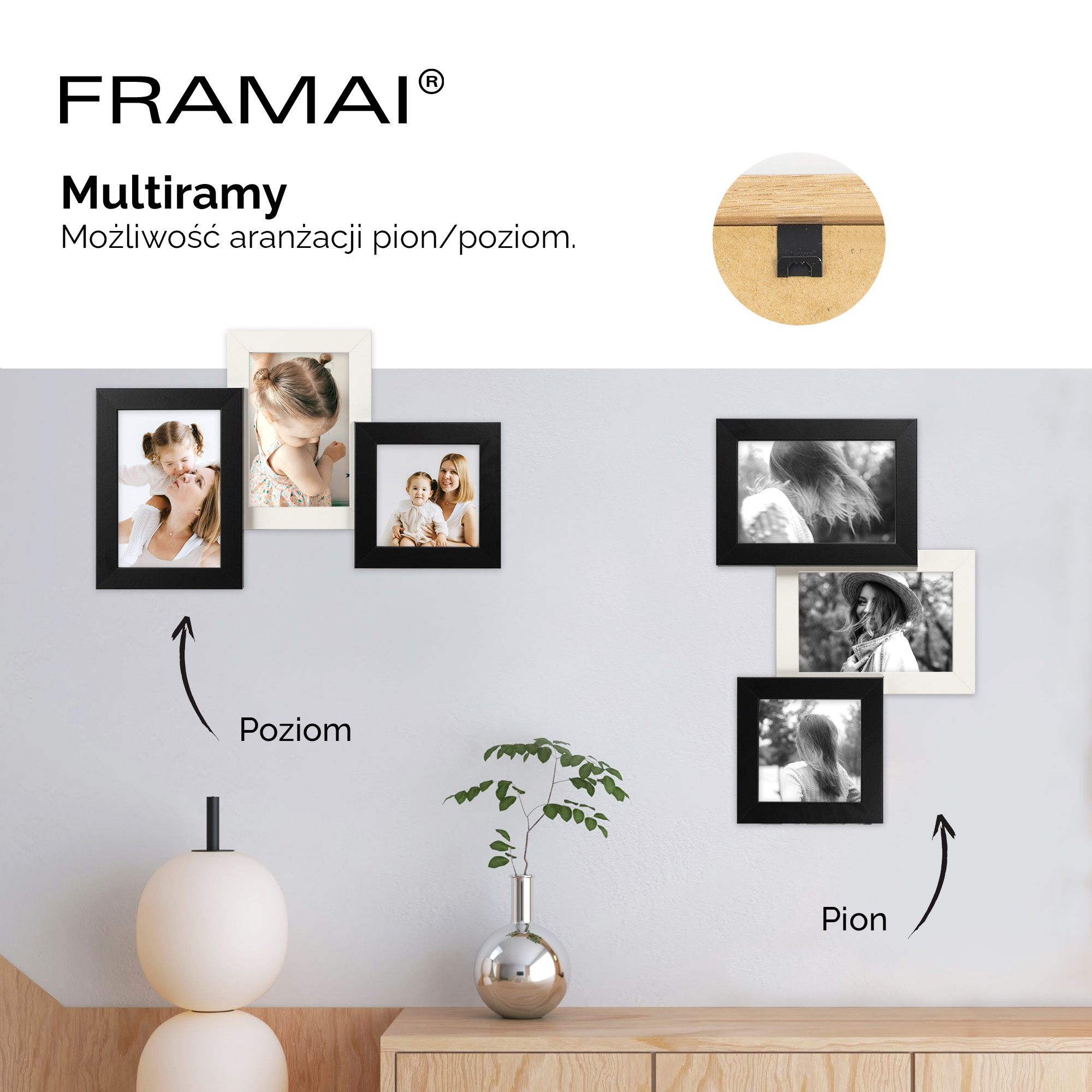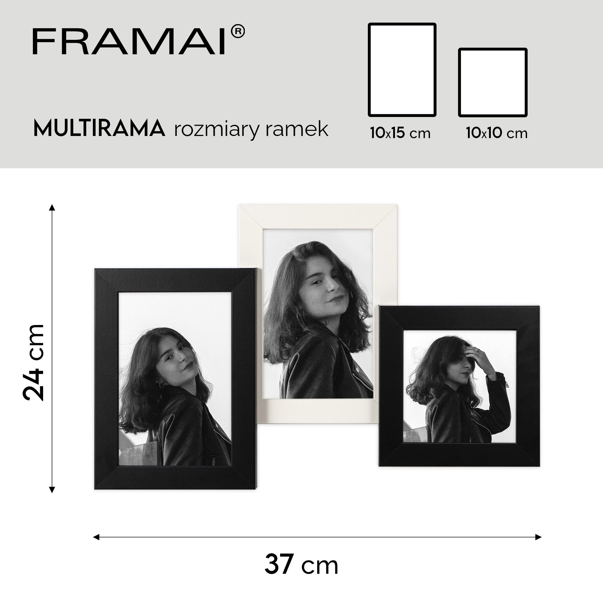 Czarno-biała Multirama HEN 1 2 24x37 cm z ekologicznego MDF z nietłukącą się plexi – ramka na 3 zdjęcia 10x15 cm, 10x10 cm.