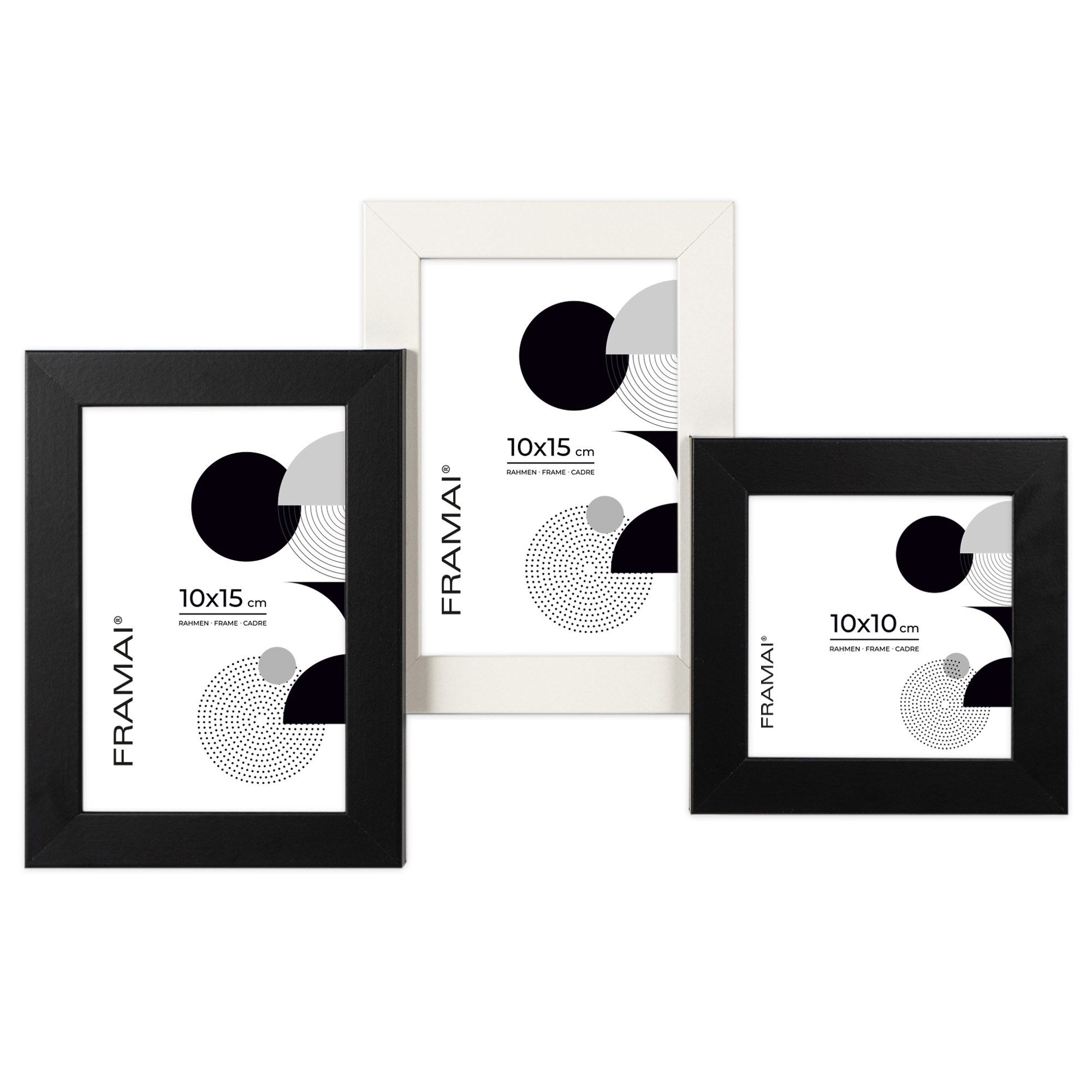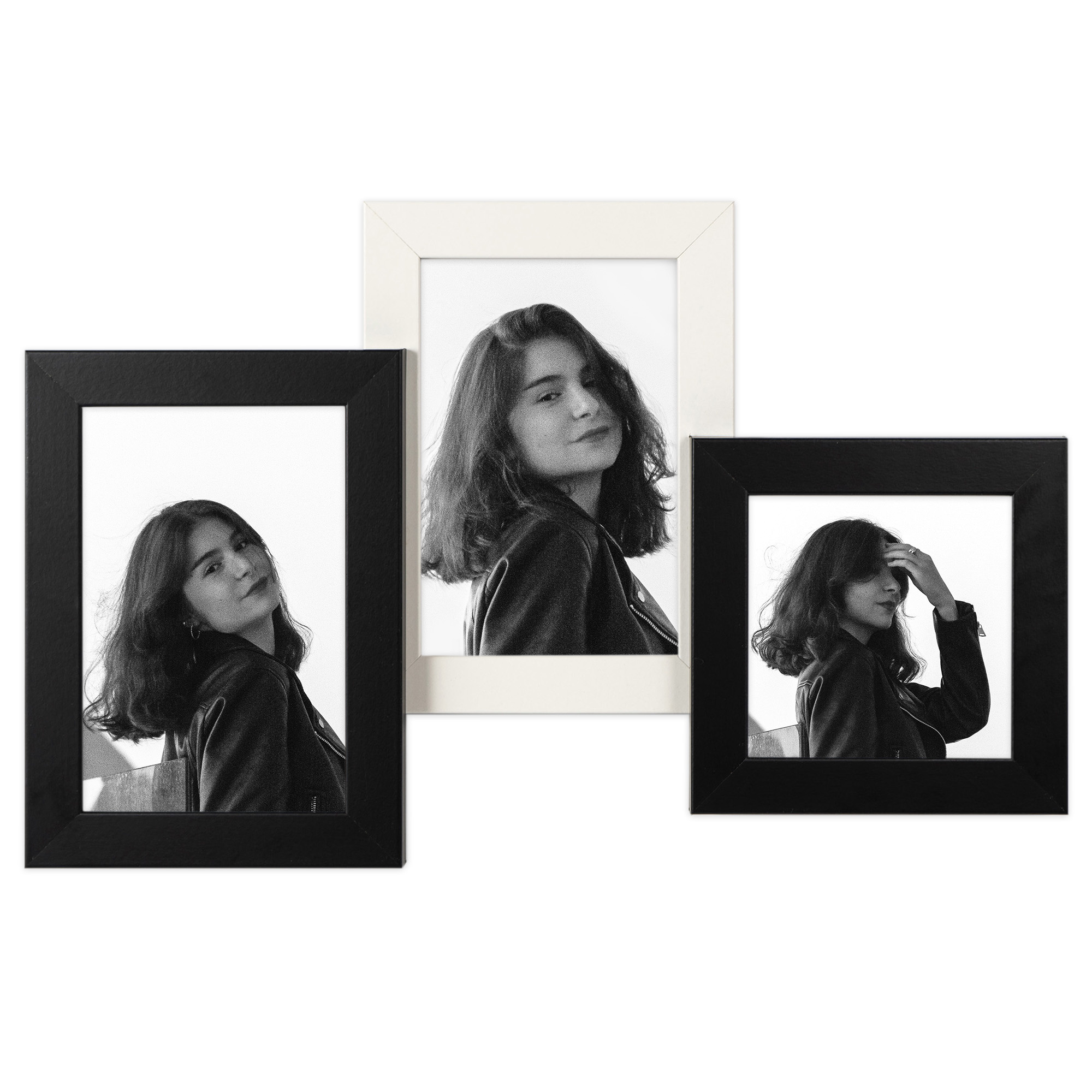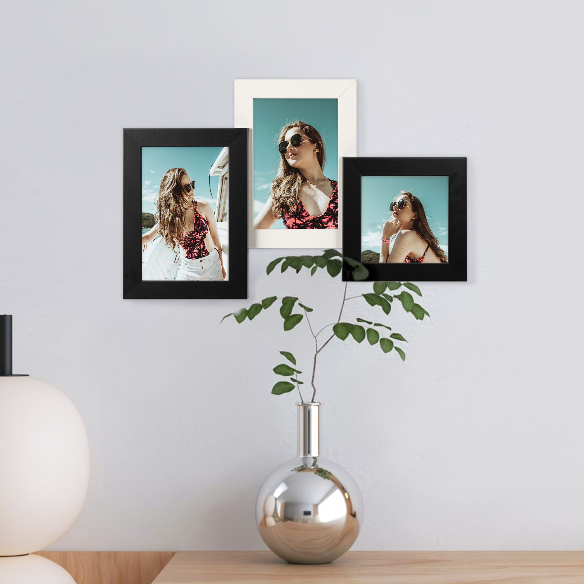 Czarno-biała Multirama HEN 1 2 24x37 cm z ekologicznego MDF z nietłukącą się plexi – ramka na 3 zdjęcia 10x15 cm, 10x10 cm.