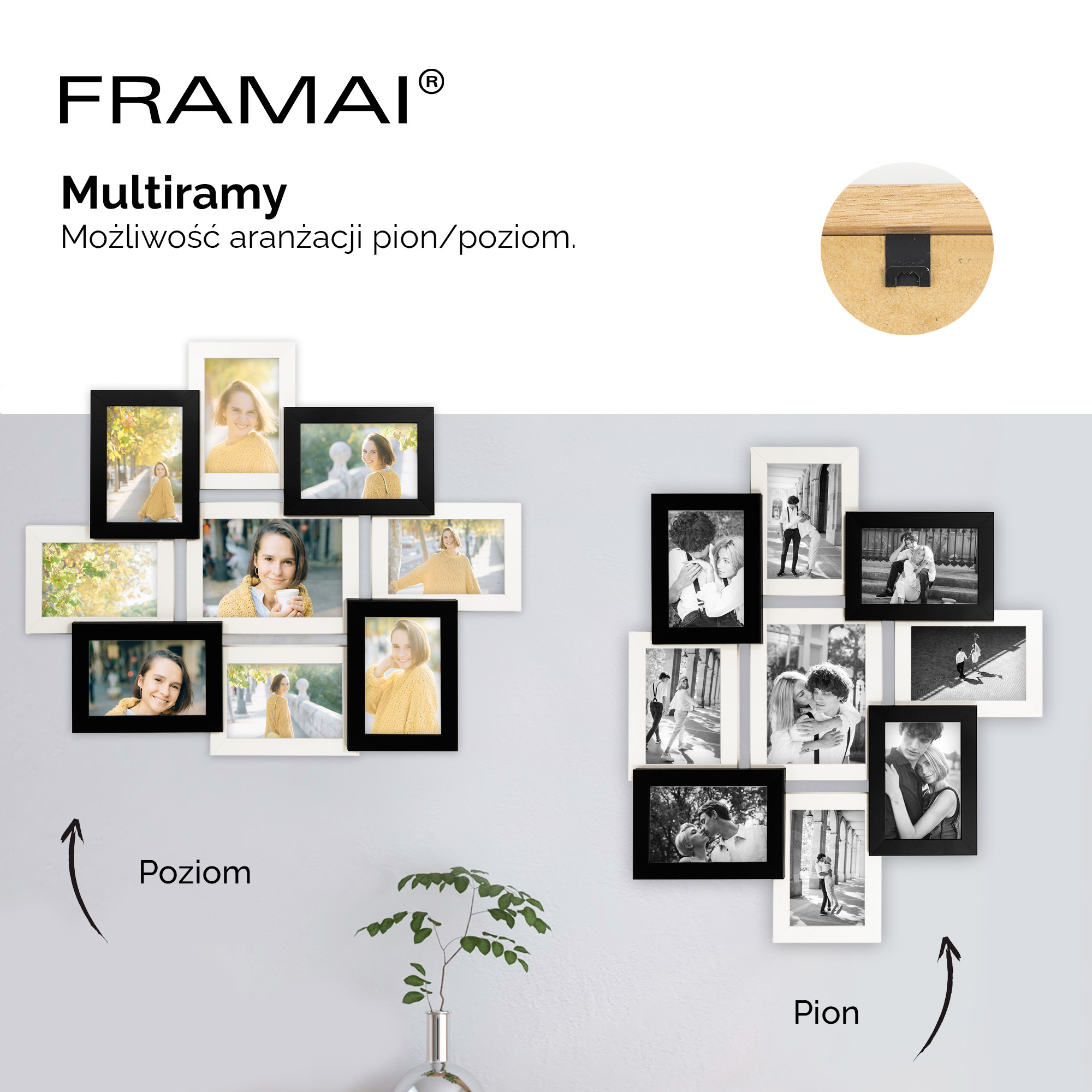 Multirama HEN 1-2 to elegancka oprawa na 8 zdjęć o wymiarach 10x15 cm i 1 zdjęcie 13x18 cm. Wykonana z MDF z prostym, matowym wykończeniem w eleganckim czarno-białym kolorze, stanowi idealną propozycję do stworzenia stylowej galerii rodzinnej lub wyeksponowania wyjątkowych wspomnień z wakacji. Każda multirama jest wykonana w 100% z ekologicznego MDF, wyposażona w bezbarwne plexi organiczne oraz twarde plecy z płyty HDF, co zapewnia trwałość i stabilność konstrukcji.