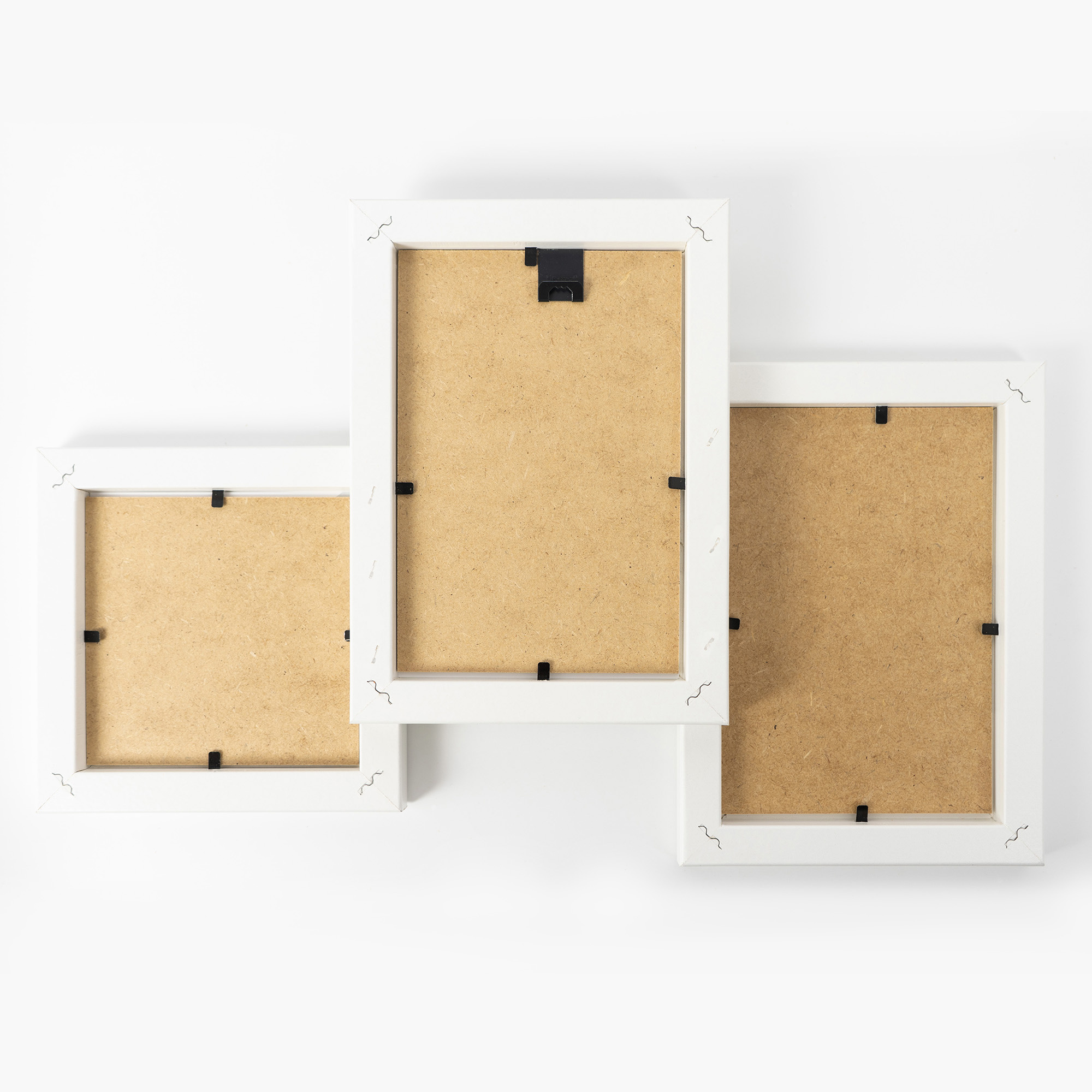 Biała Multirama HEN 1 24x37 cm z ekologicznego MDF z nietłukącą się plexi – ramka na 3 zdjęcia 10x15 cm, 10x10 cm.