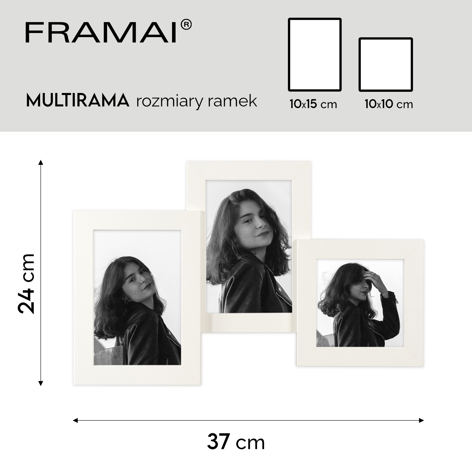 Biała Multirama HEN 1 to elegancka oprawa na 3 zdjęcia – o wymiarach 10x15 cm - 10x10 cm. Wykonana z MDF z prostym, matowym wykończeniem w klasycznym, czarnym kolorze, stanowi idealną propozycję do stworzenia stylowej galerii rodzinnej lub wyeksponowania wyjątkowych wspomnień z wakacji. Każda multirama jest wykonana w 100% z ekologicznego MDF, wyposażona w bezbarwne plexi organiczne oraz twarde plecy z płyty HDF, co zapewnia trwałość i stabilność konstrukcji.