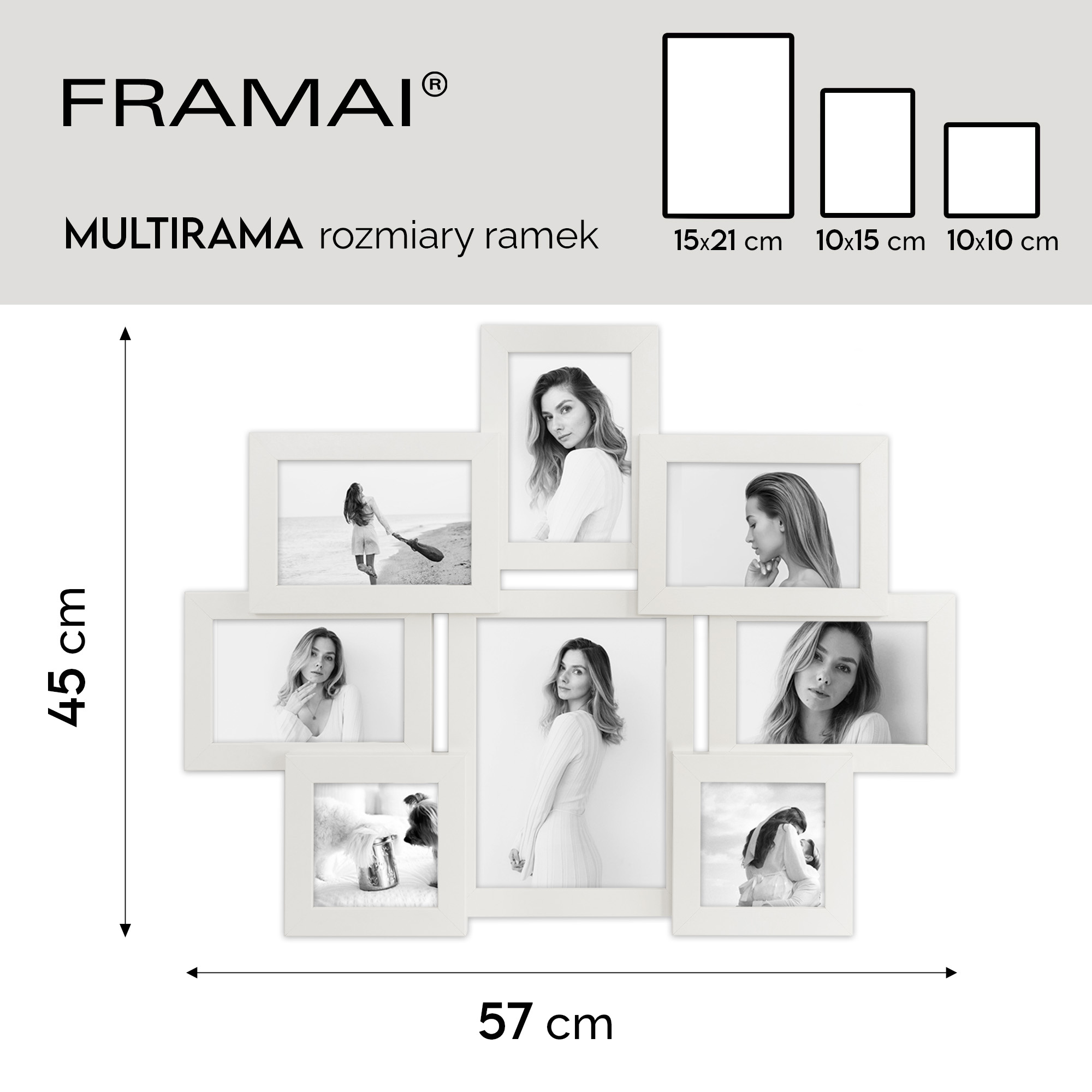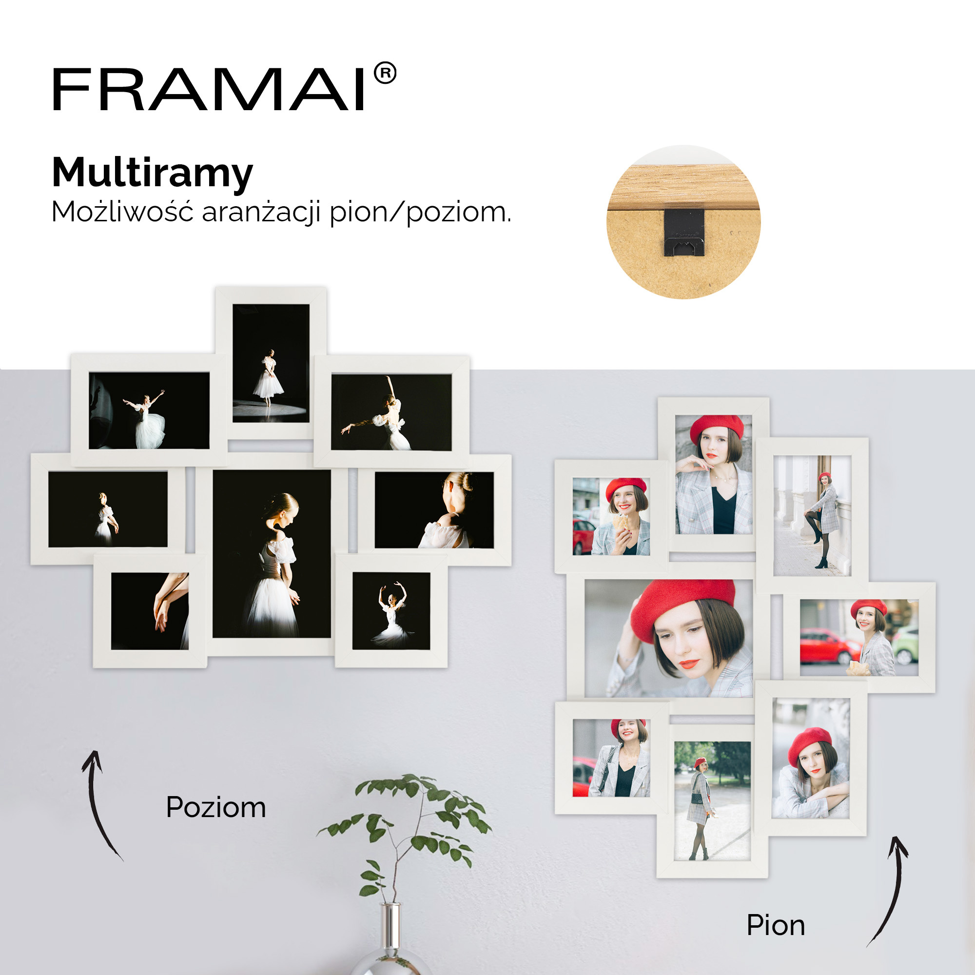 Multirama HEN 1 57x45 cm z ekologicznego MDF z nietłukącą się plexi ramka na 8 zdjęć