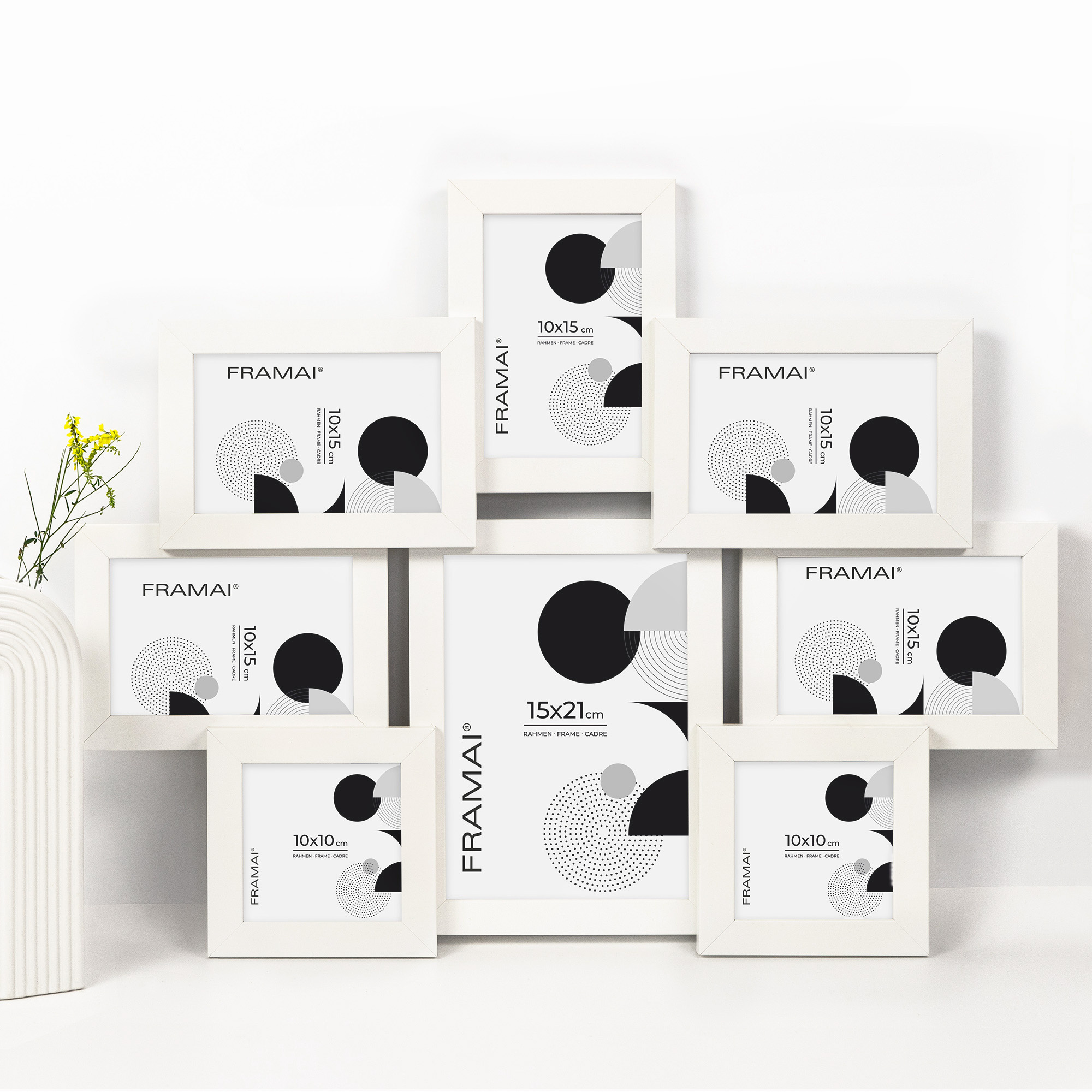 Multirama HEN 1 to elegancka oprawa na 5 zdjęć o wymiarach 10x15 cm, 2 zdjęcia 10x10 cm i 1 zdjęcie 15x21 cm. Wykonana z MDF z prostym, matowym wykończeniem w eleganckim białym kolorze, stanowi idealną propozycję do stworzenia stylowej galerii rodzinnej lub wyeksponowania wyjątkowych wspomnień z wakacji. Każda multirama jest wykonana w 100% z ekologicznego MDF, wyposażona w bezbarwne plexi organiczne oraz twarde plecy z płyty HDF, co zapewnia trwałość i stabilność konstrukcji.