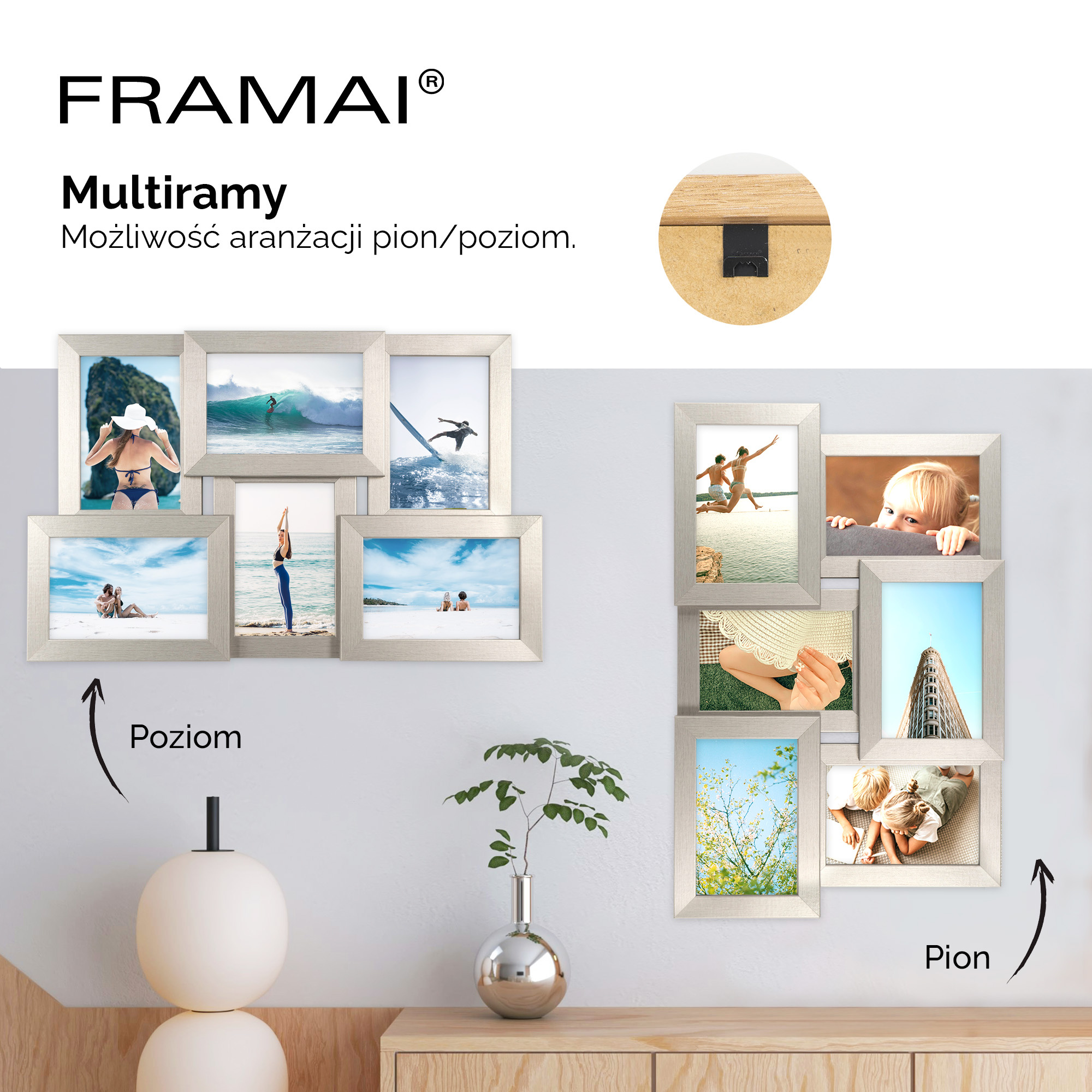 Multirama HEN Z 30x47 cm z ekologicznego MDF z nietłukącą się plexi ramka na 6 zdjęć 10x15 cm