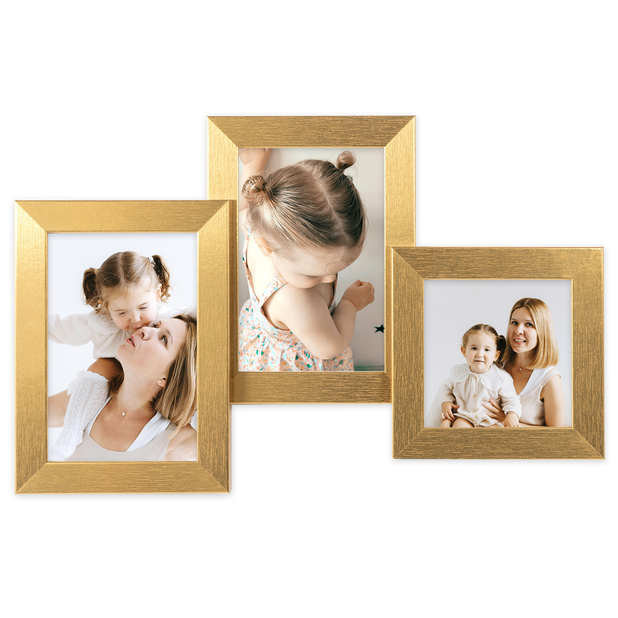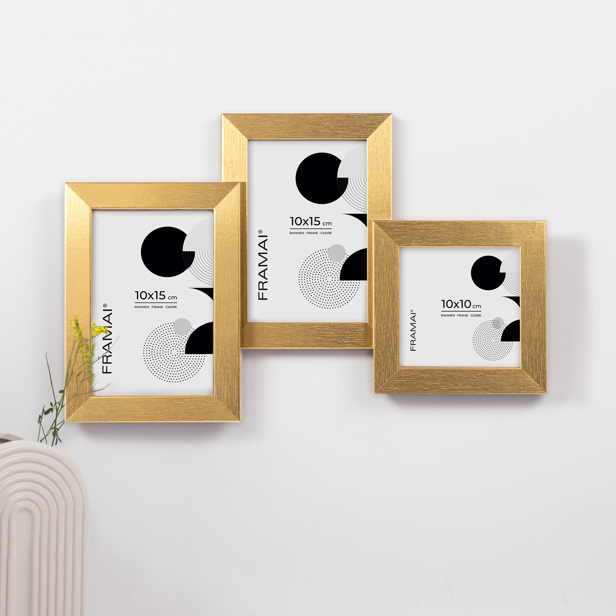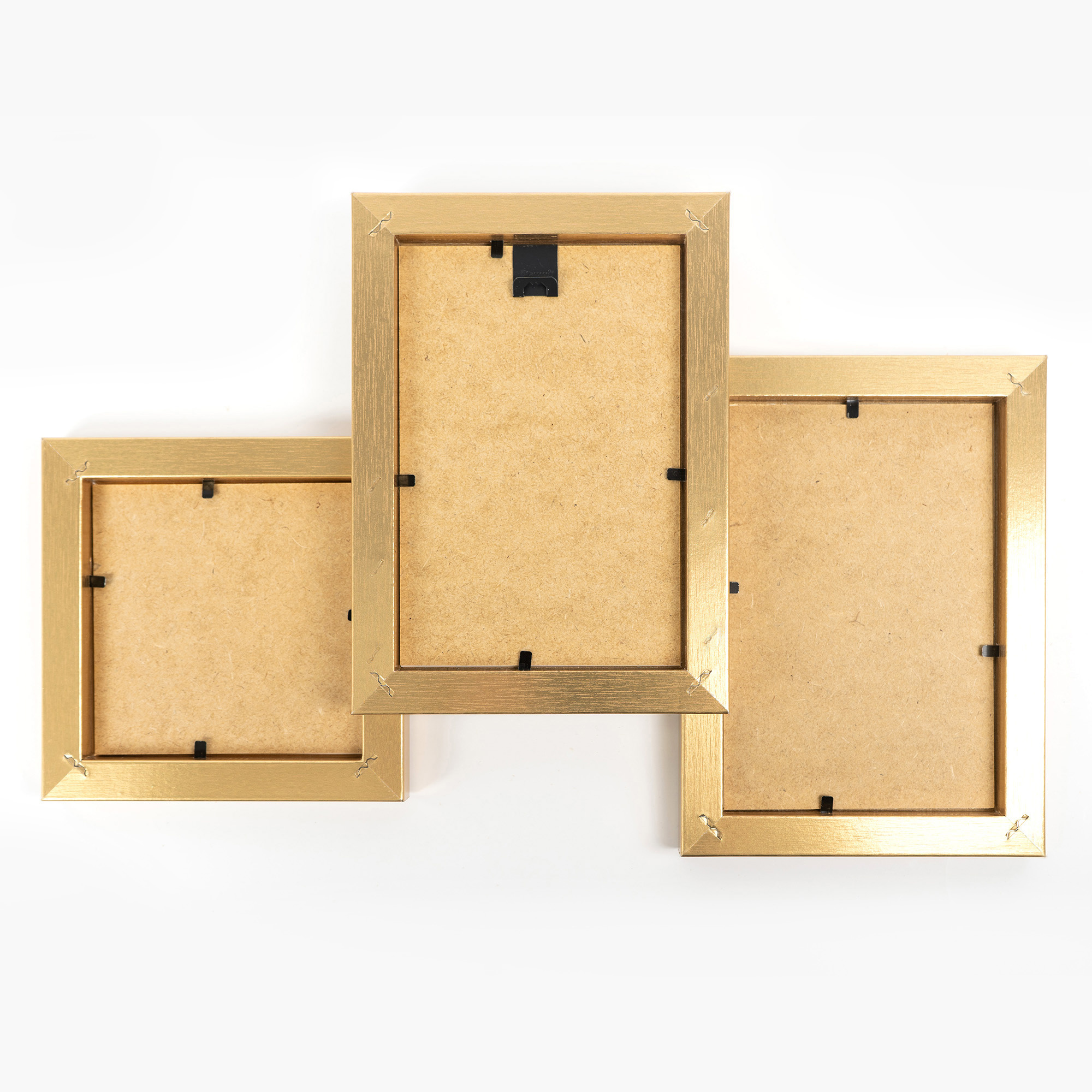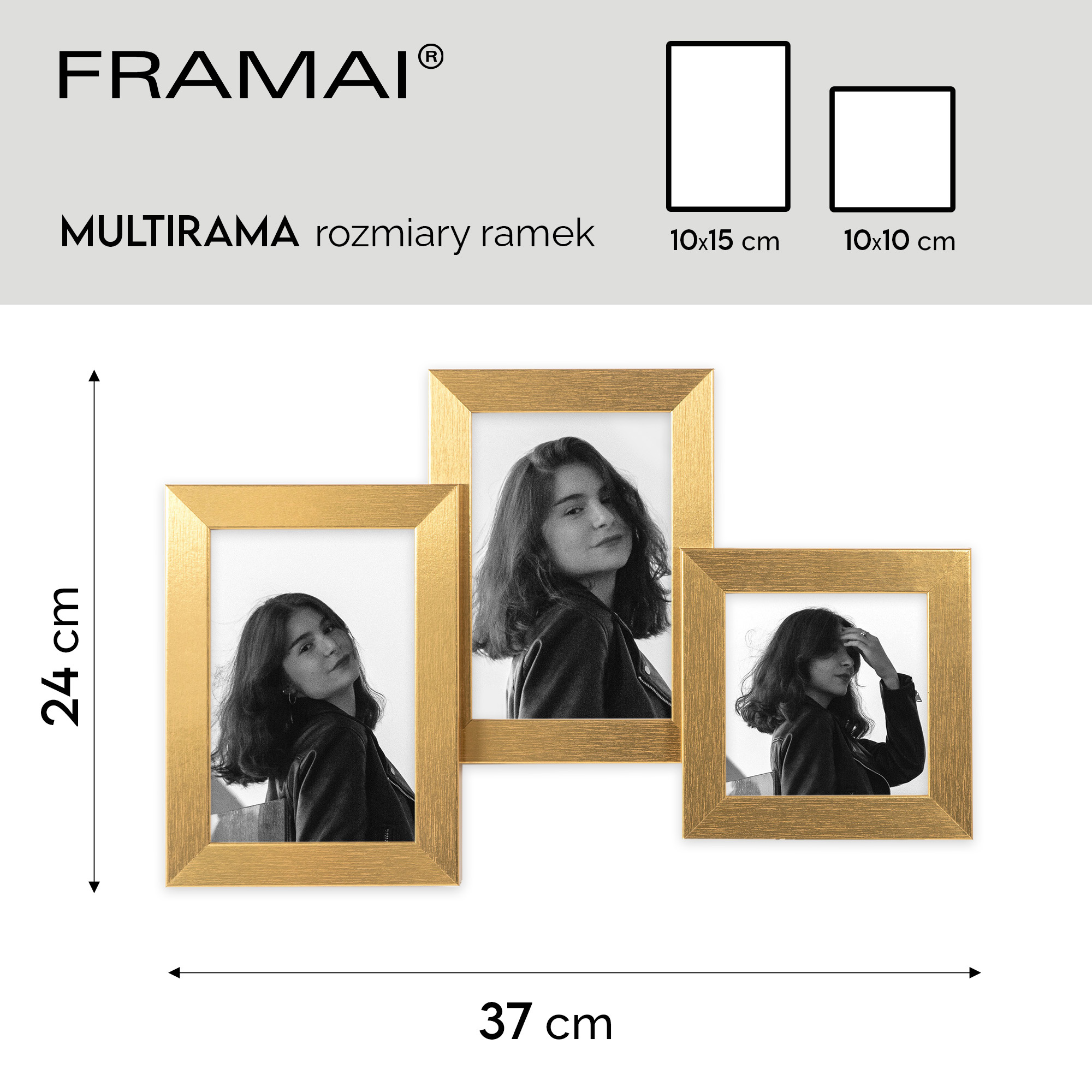 Złota Multirama HEN Z 24x37 cm z ekologicznego MDF z nietłukącą się plexi – ramka na 3 zdjęcia 10x15 cm, 10x10 cm.