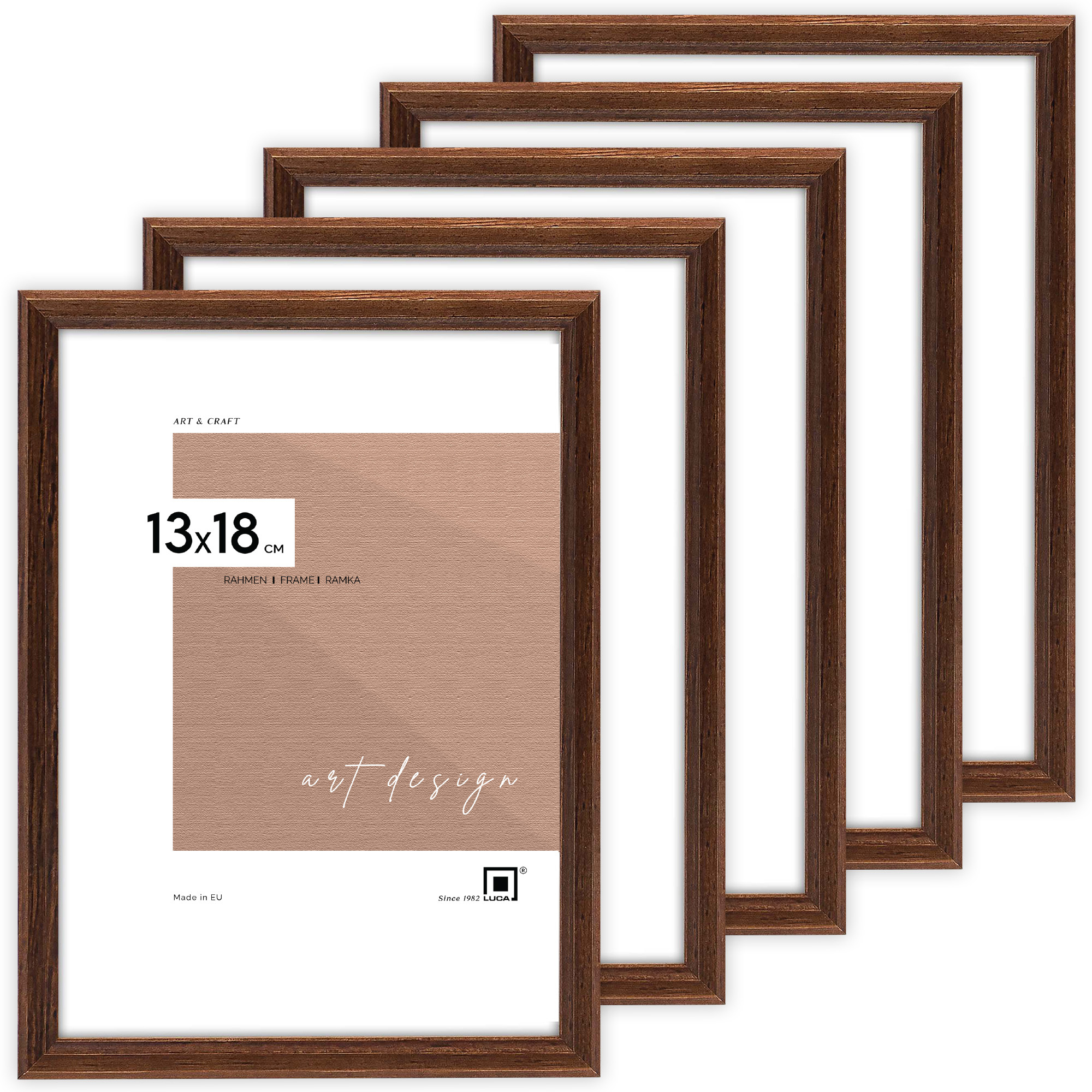 Pakiet 5 sztuk brązowych ramek drewnianych DRWA 4 o rozmiarze 13x18 cm