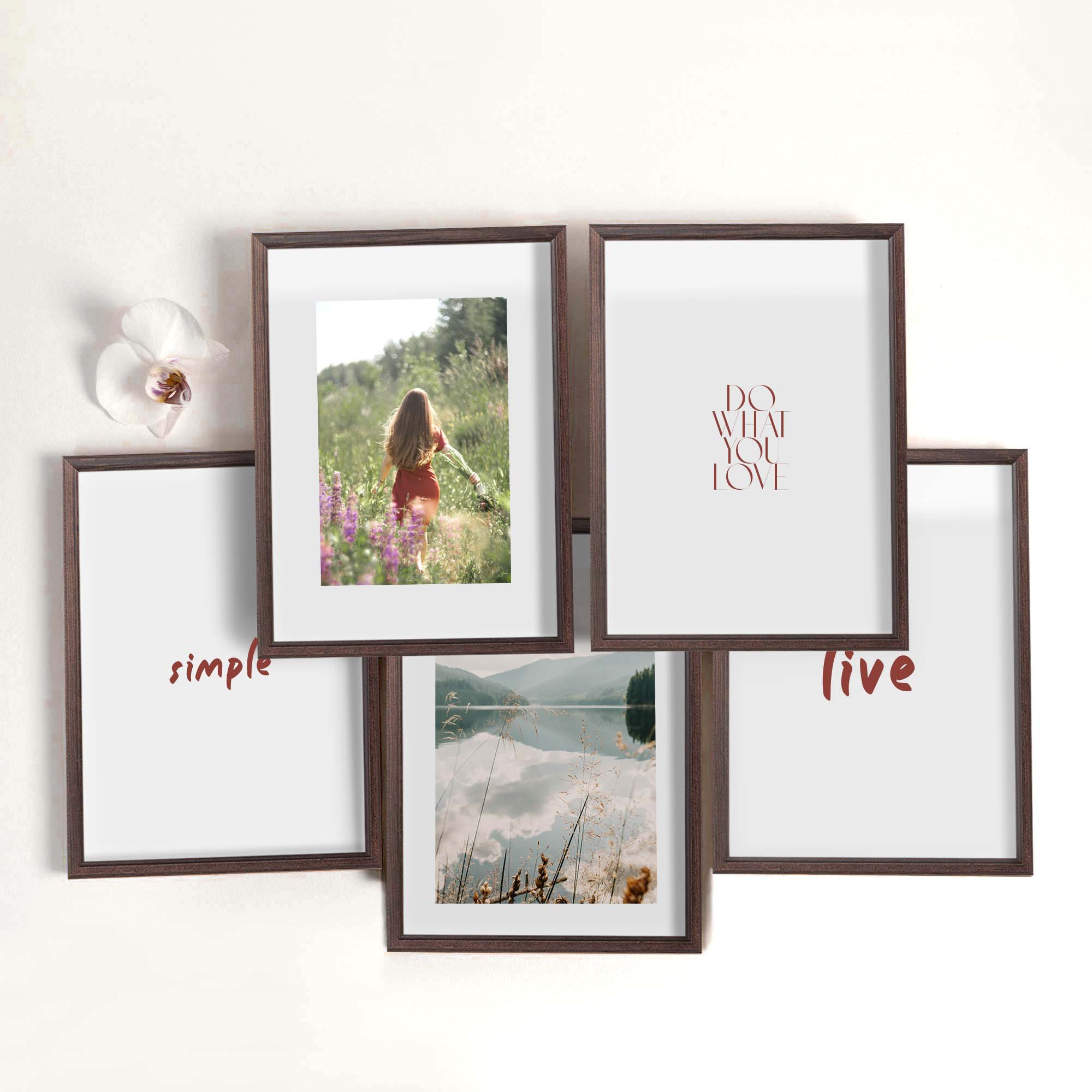 Pakiet 5 szt. ciemno brązowych ramek drewnianych na zdjęcia DRWA 44 21x30 cm